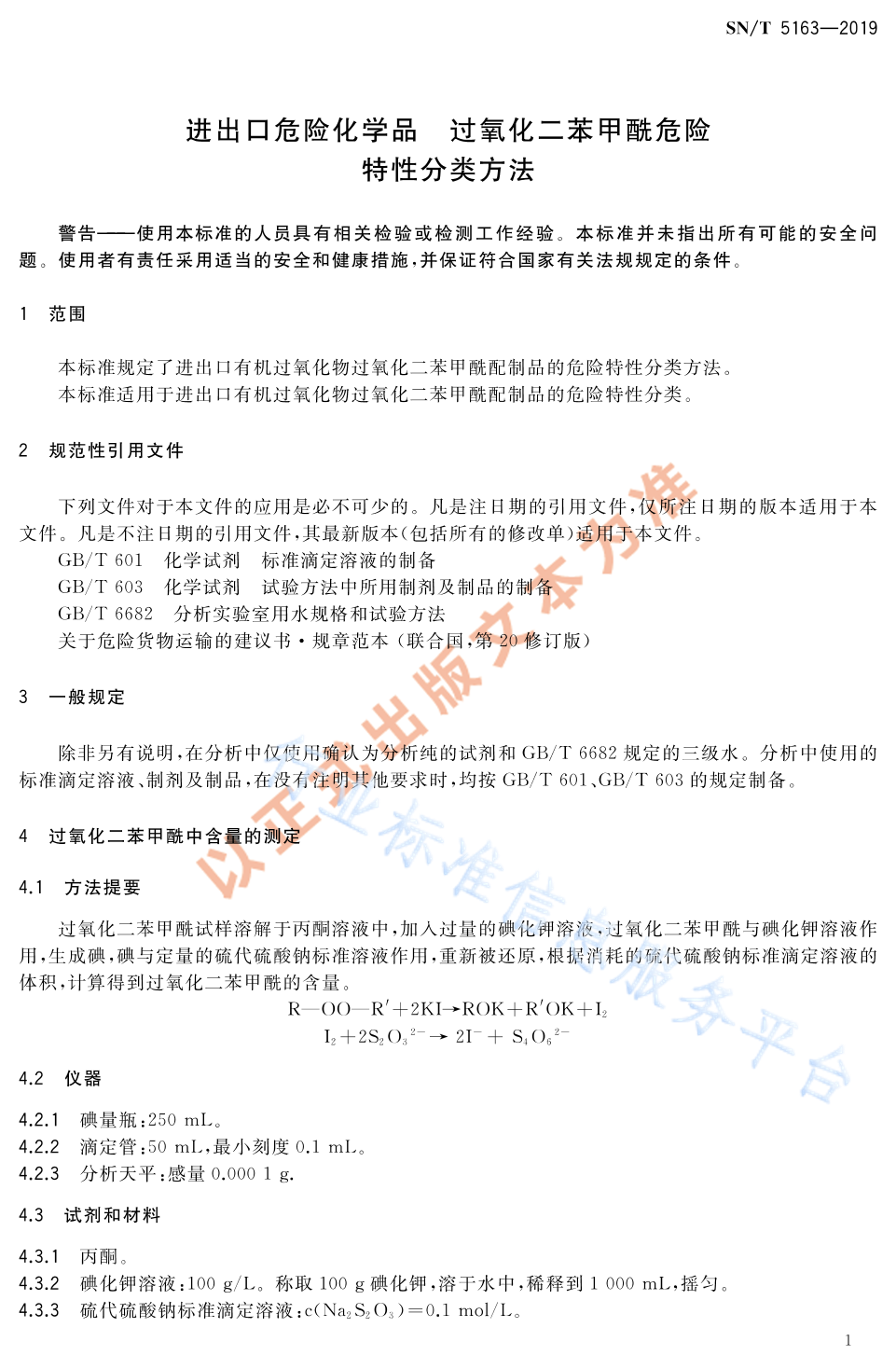 SN/T 5163-2019 进出口危险化学品 过氧化二苯甲酰危险特性分类方法