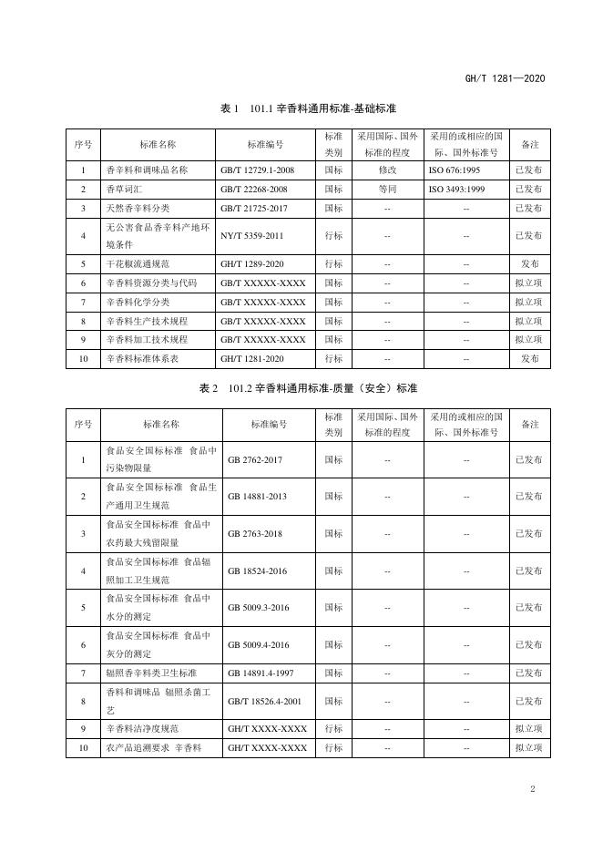 GH/T 1281-2020 辛香料标准体系表