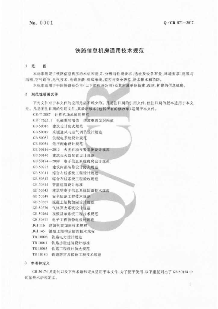 Q/CR 571-2017 铁路信息机房通用技术规范