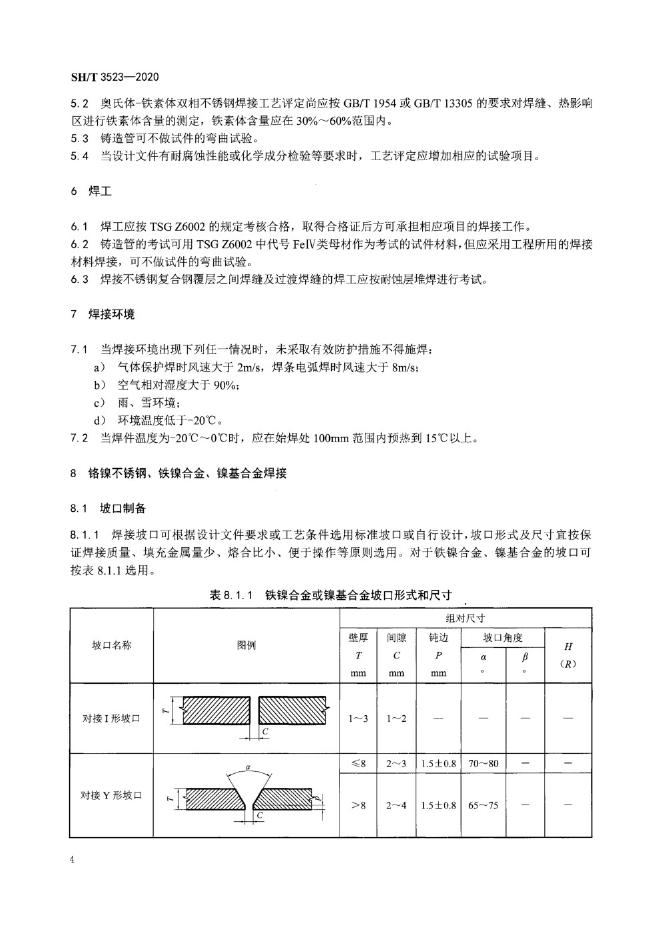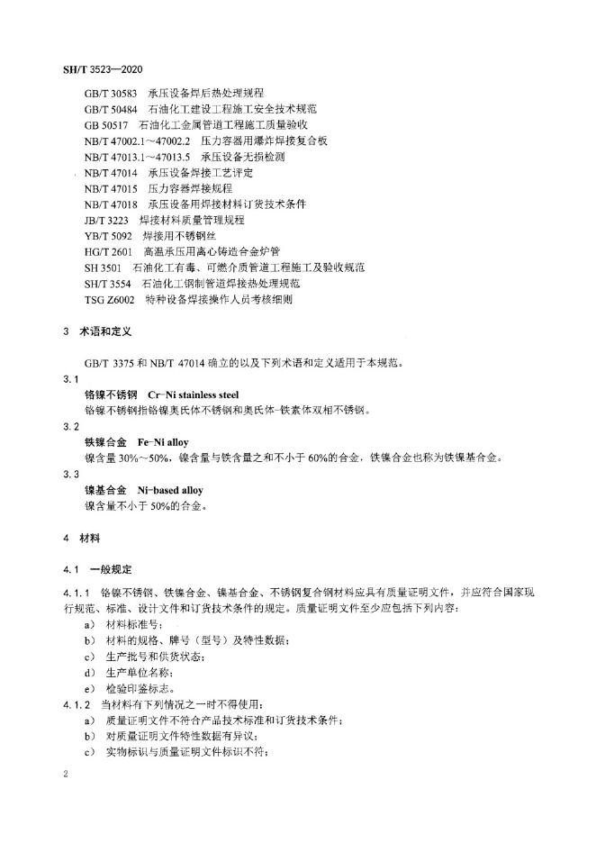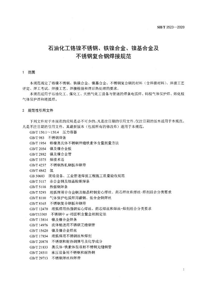 SH/T 3523-2020 石油化工铬镍不锈钢、铁镍合金、镍基合金及不锈钢复合钢焊接规范