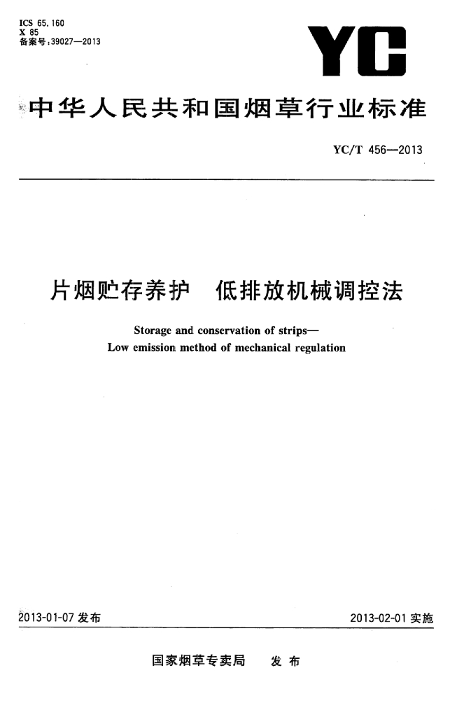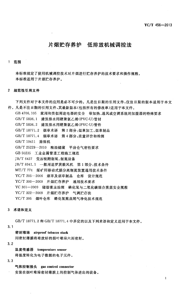 YC/T 456-2013 片烟贮存养护低排放机械调控法