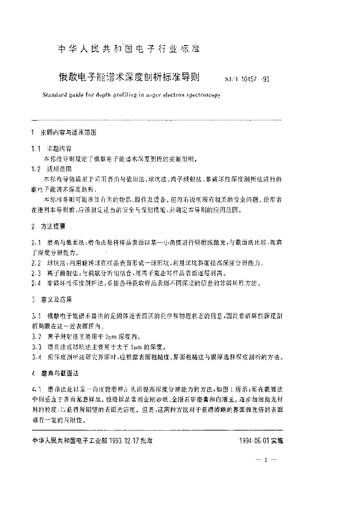 SJ/T 10457-1993 俄歇电子能谱术深度剖析标准导则