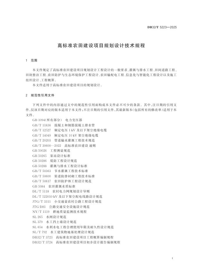 DB32/T 5223-2025 高标准农田建设项目规划设计技术规程