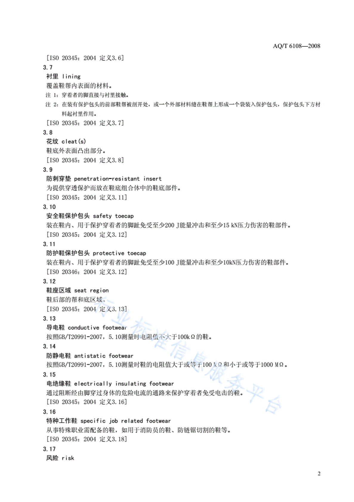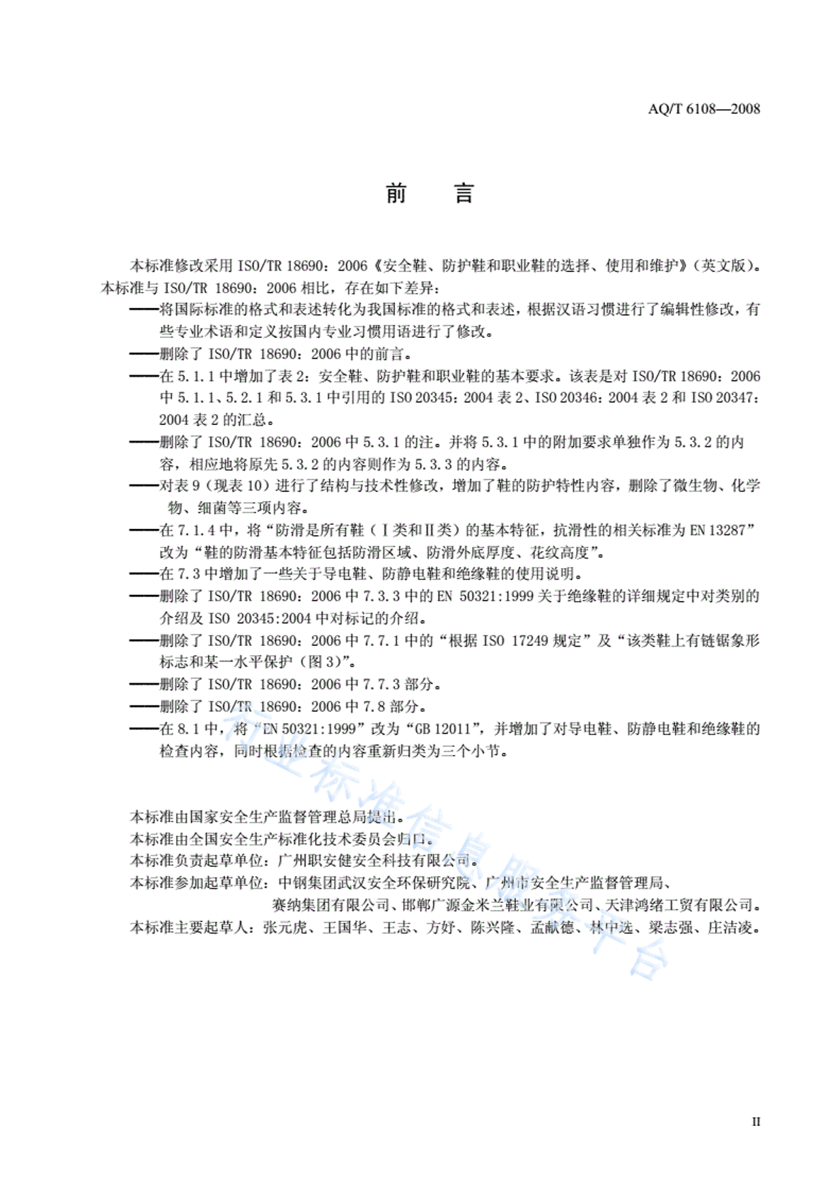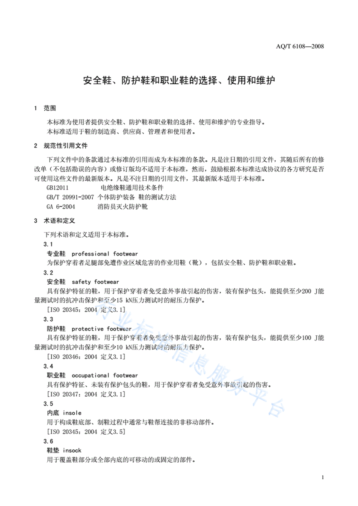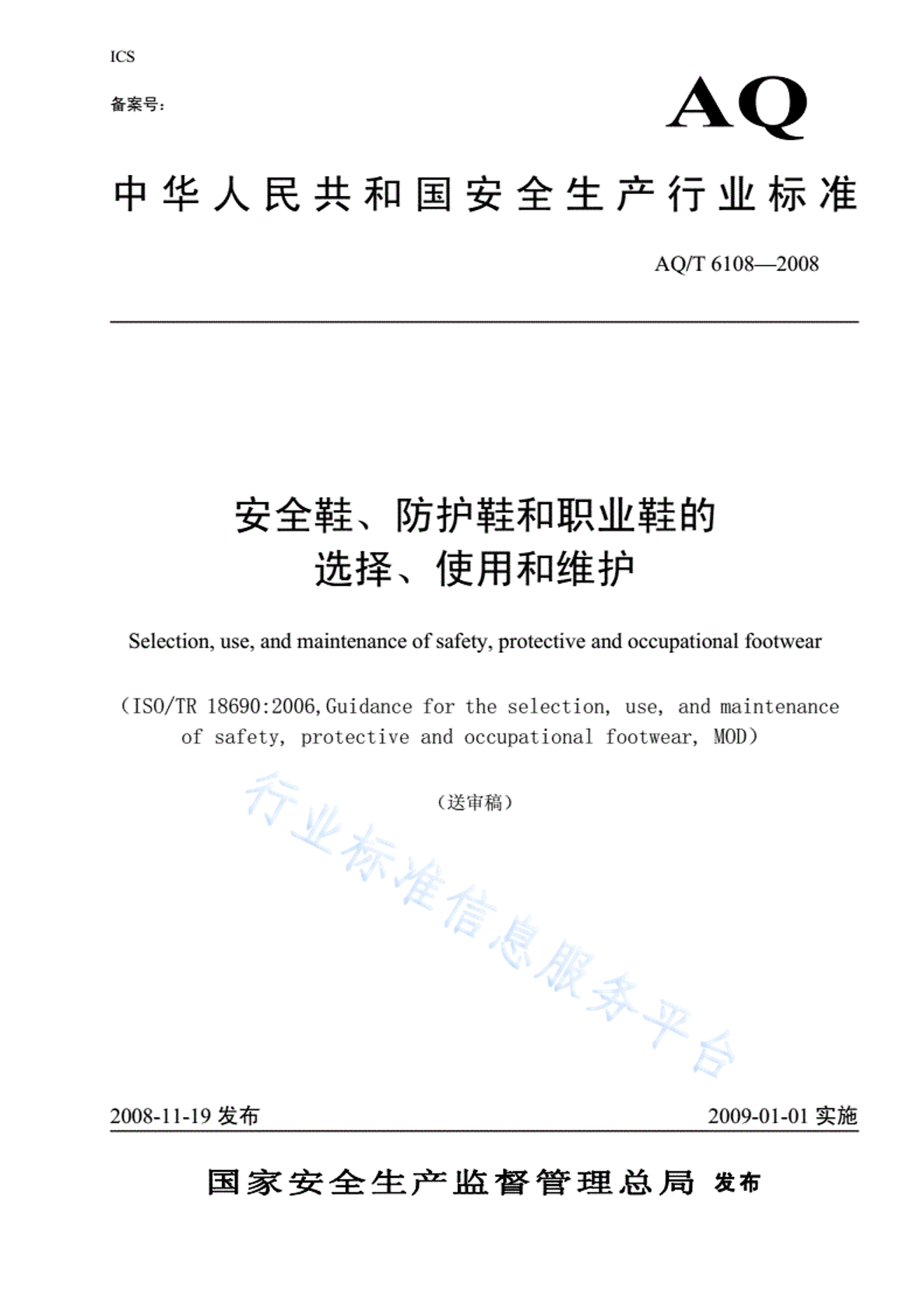 AQ/T 6108-2008 安全鞋、防护鞋和职业鞋的选择、使用和维护