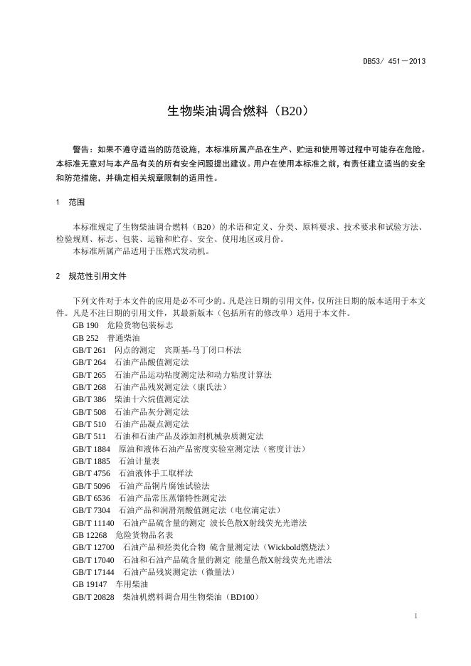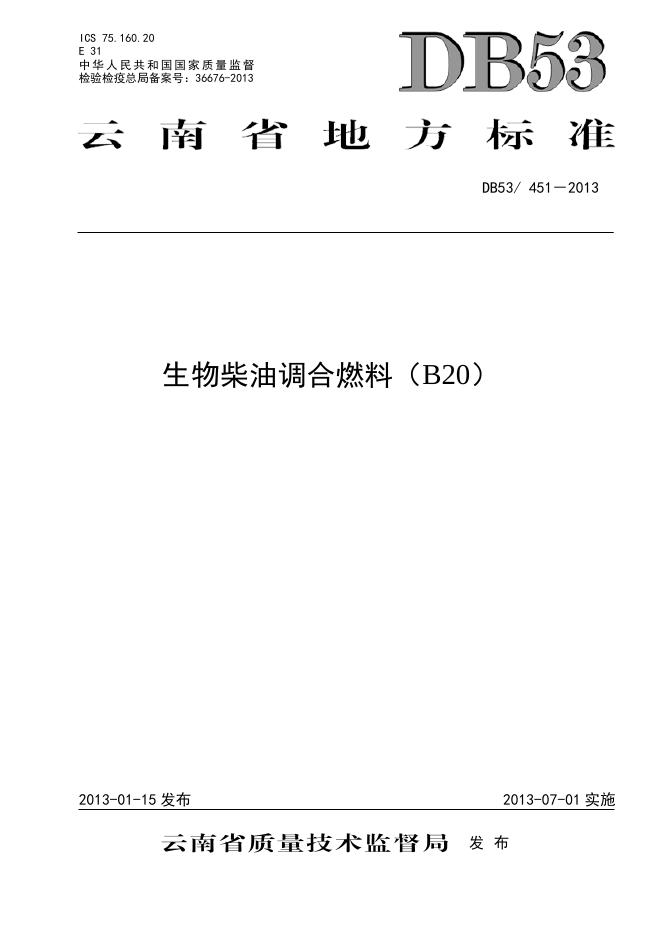DB53/T 451-2013 生物柴油调合燃料(B20)