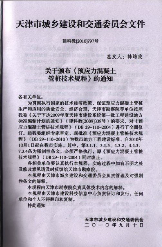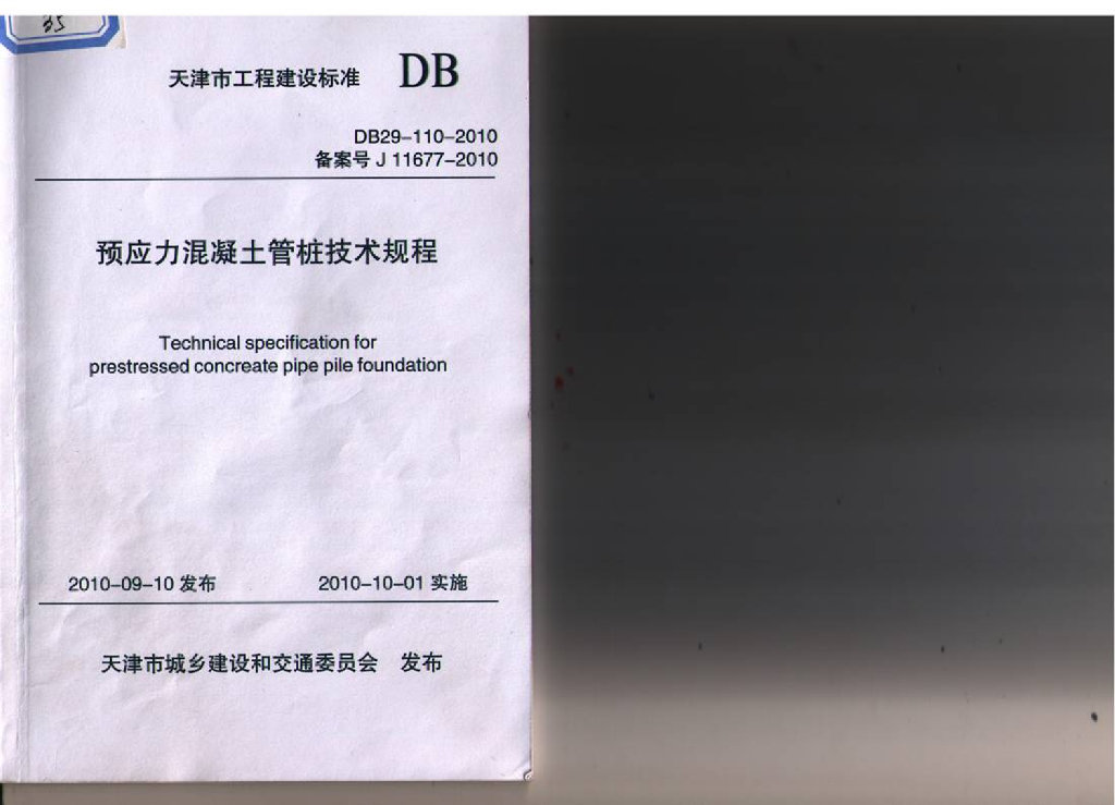 DB 29-110-2010 预应力混凝土管桩技术规程