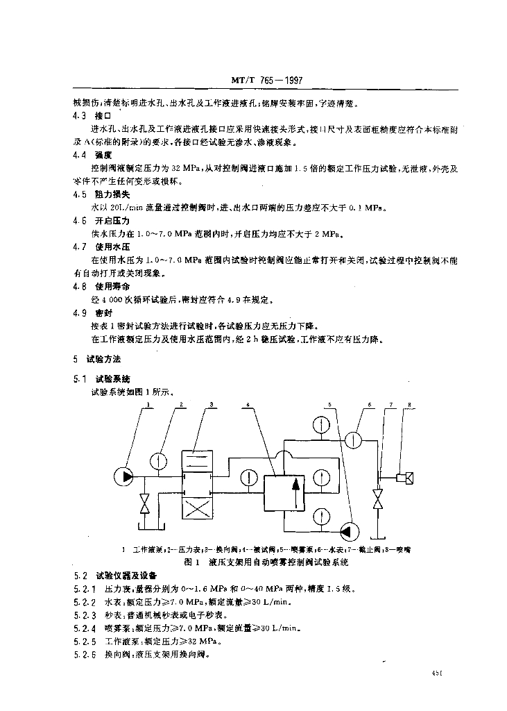 MT/T 765-1997 液压支架用自动喷雾控制阀通用技术条件