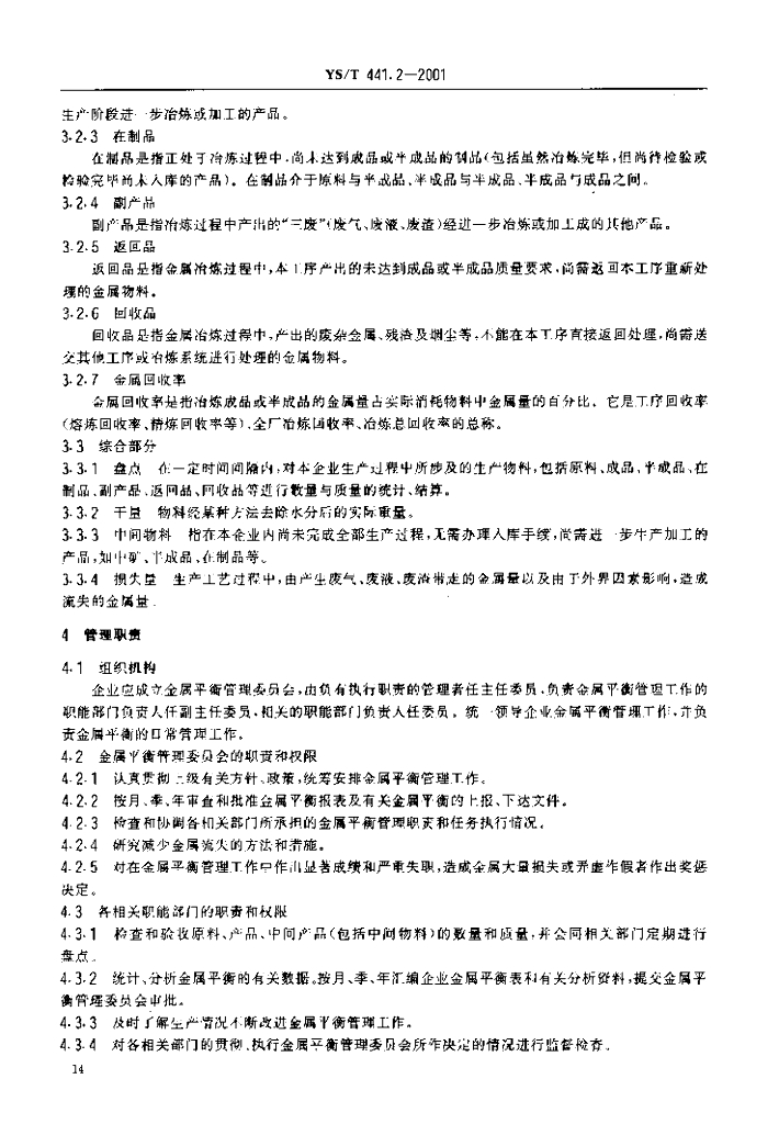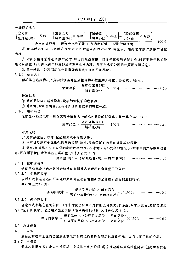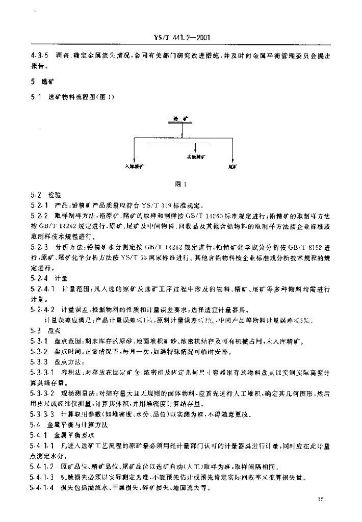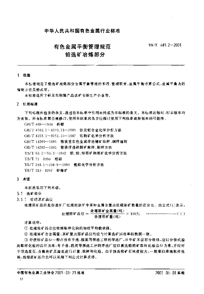 YS/T 441.2-2001 有色金属平衡管理规范铅选矿冶炼部分