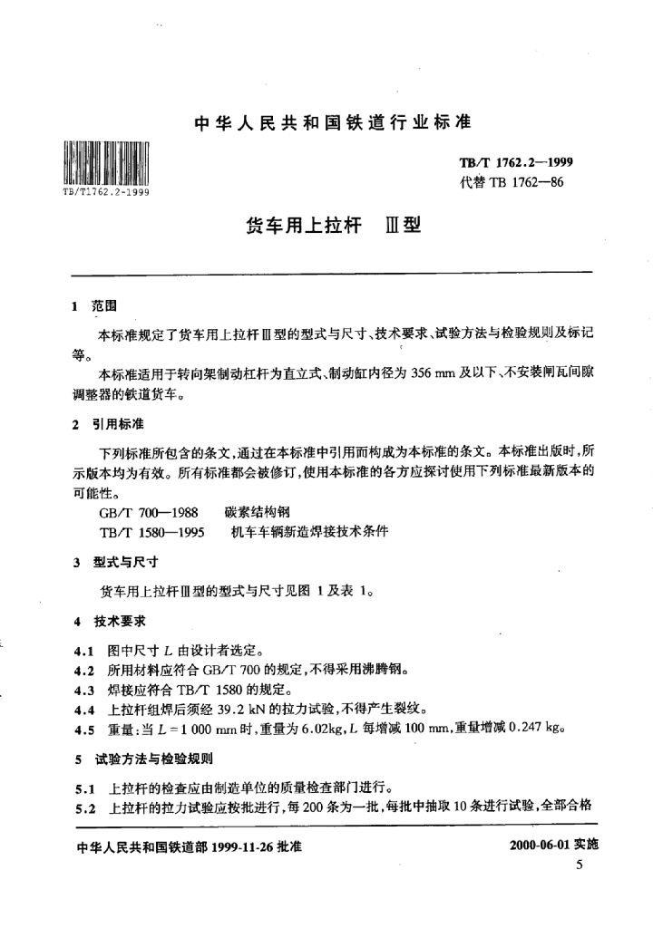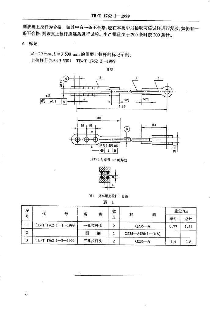 TB/T 1762.2-1999 货车用上拉杆 III型