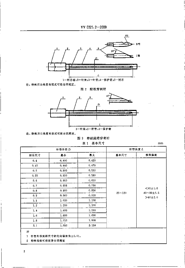 YY 0321.2-2000 一次性使用麻醉穿刺针