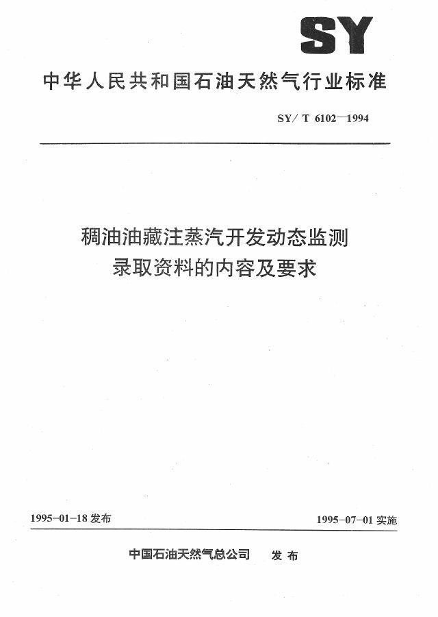 SY/T 6102-1994 稠油油藏注蒸汽开发动态监测录取资料的内容及要求