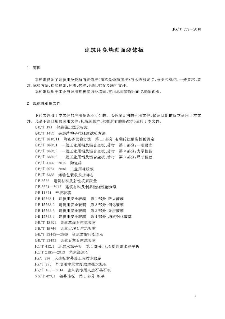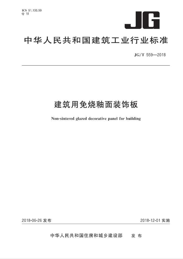 JG/T 559-2018 建筑用免烧釉面装饰板