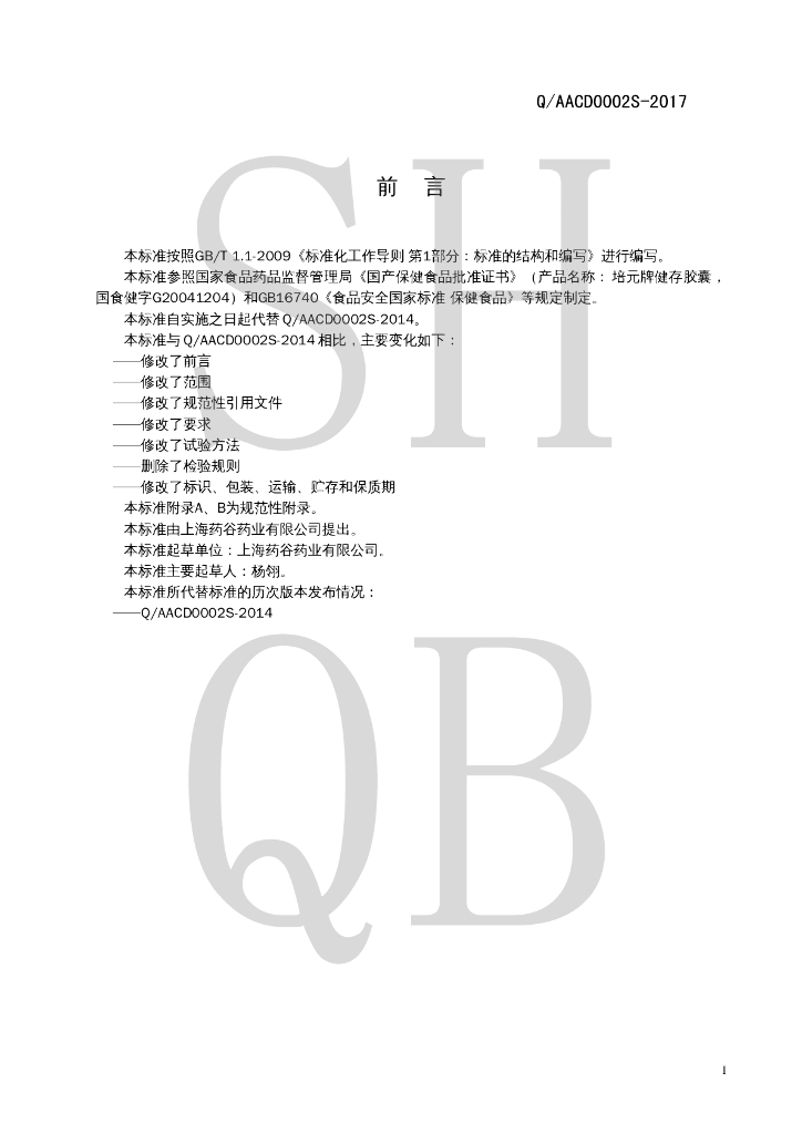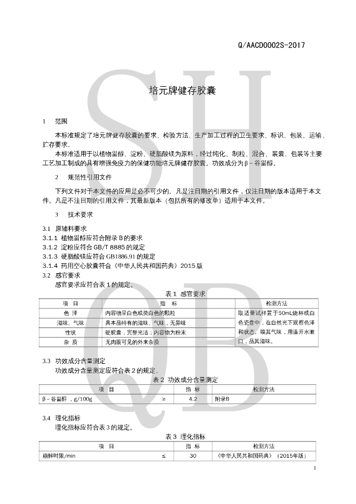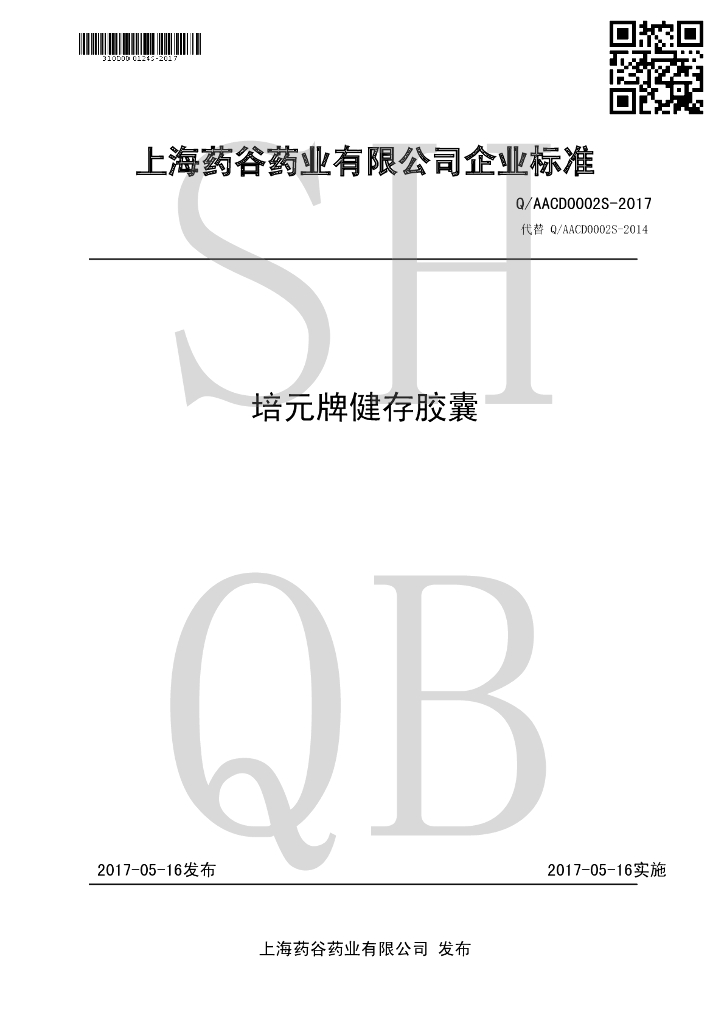 Q/AACD 0002S-2017 培元牌健存胶囊