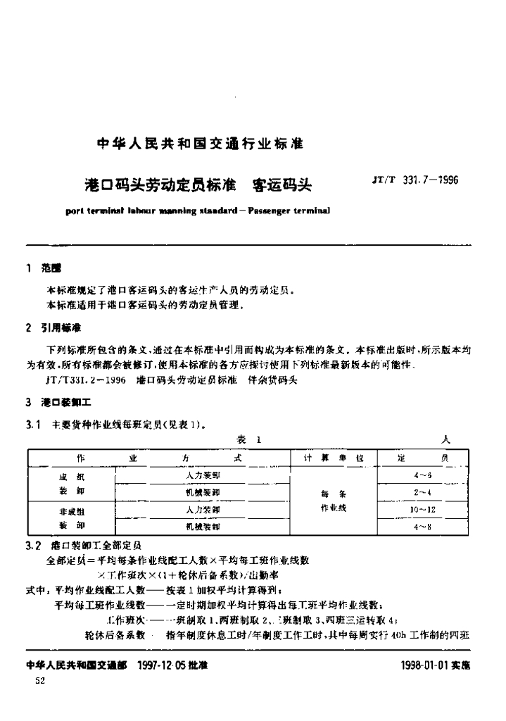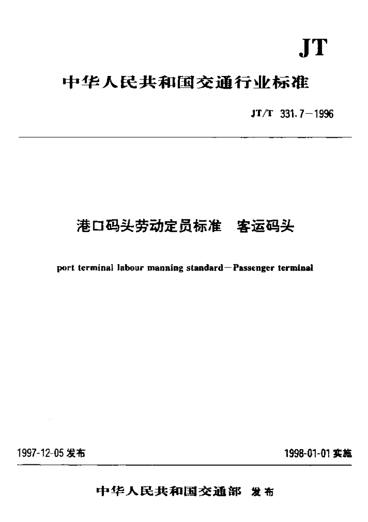 JT/T 331.7-1996 港口码头劳动定员标准客运码头