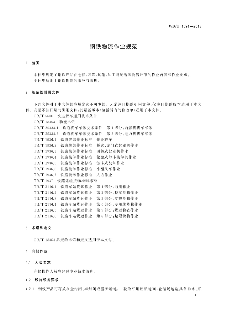 WB/T 1091-2018 钢铁物流作业规范