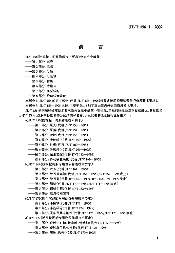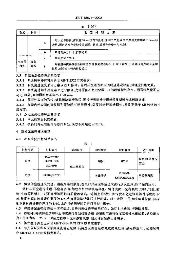 JT/T 156.1-2002 挖泥船泥泵修理 技术要求 第1部分:泵壳