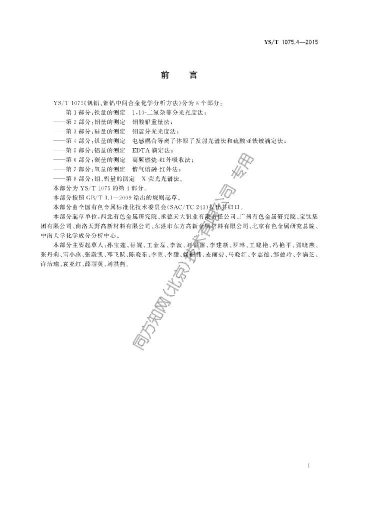 西北有色金属研究院、承德天大钒业有限责任公司、广州有色金属研究院等