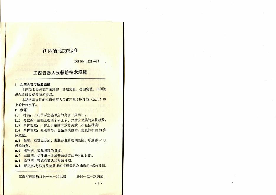 DB36/T 221-1996 江西省春大豆栽培技术规程