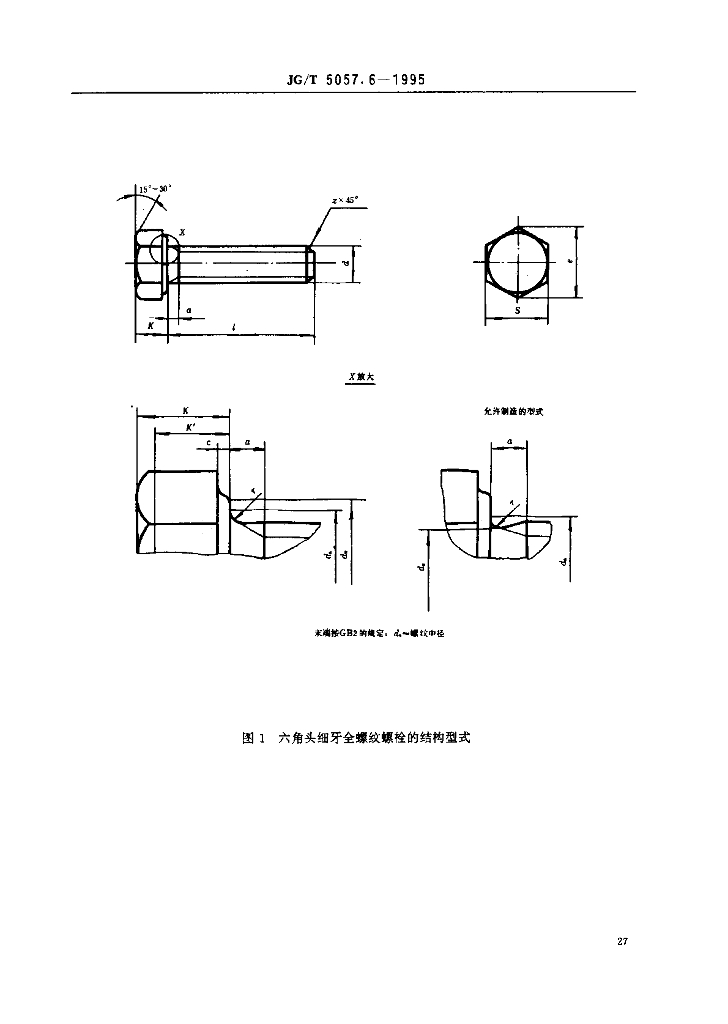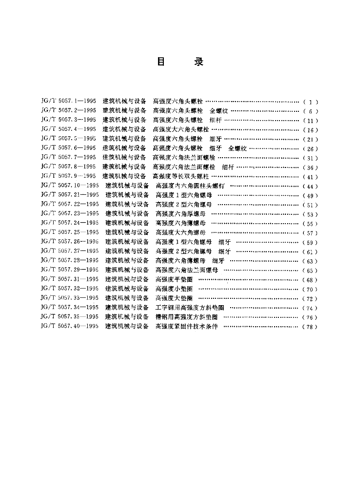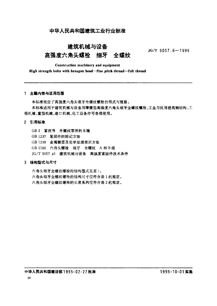 JG/T 5057.6-1995 建筑机械与设备 高强度六角头螺栓 细牙 全螺纹