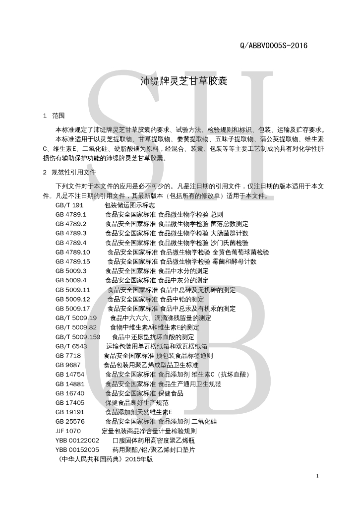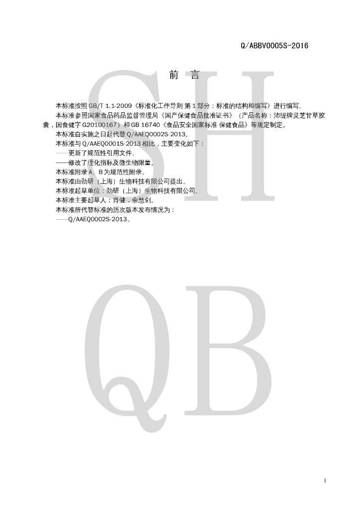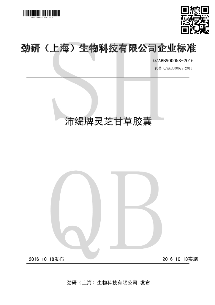Q/ABBV 0005S-2016 沛缇牌灵芝甘草胶囊