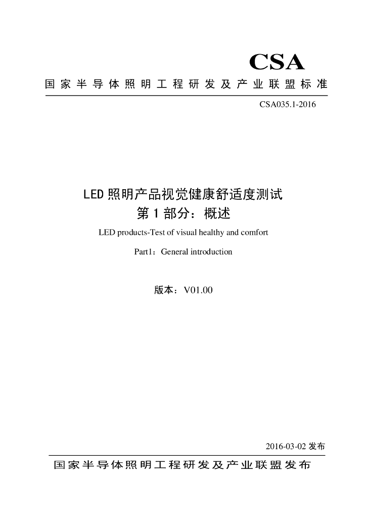 本标准主要起草单位:中国标准化研究院,常州半导体照明应用技术研究院,北京阳明智道光电科技有限公司,中国科学院光电技术研究所,杭州华普永明光电股份有限公司