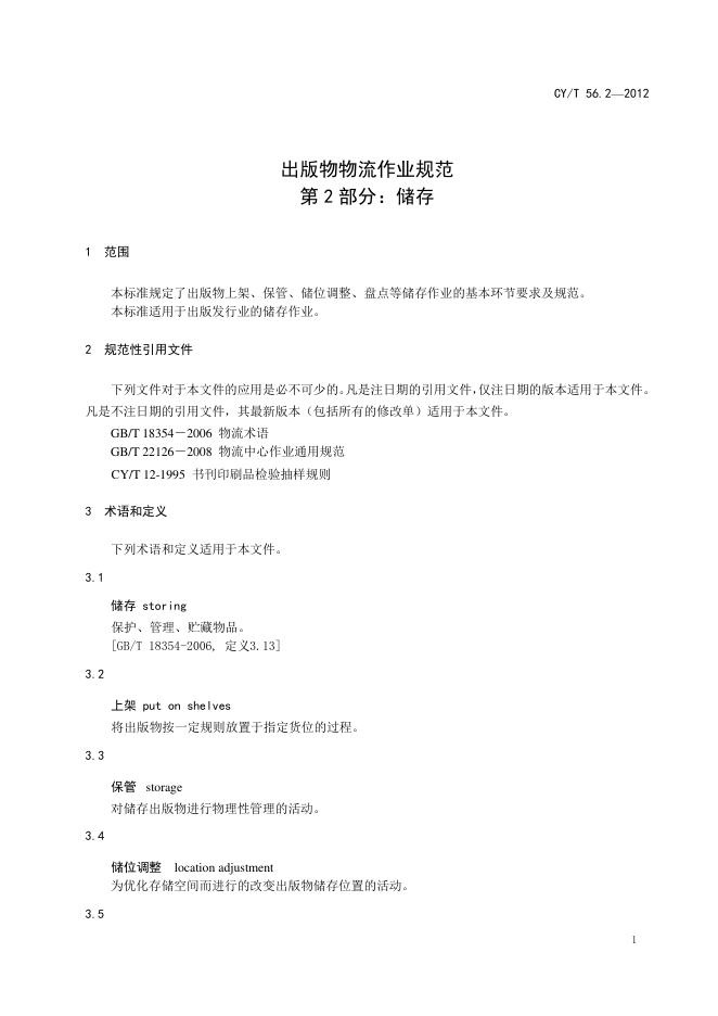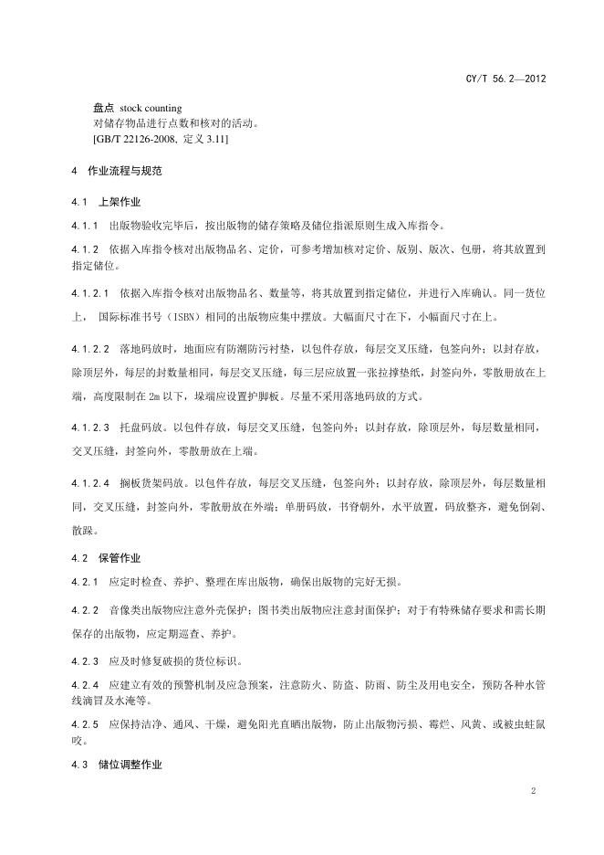 CY/T 56.2-2012 出版物物流作业规范 第2部分:储存