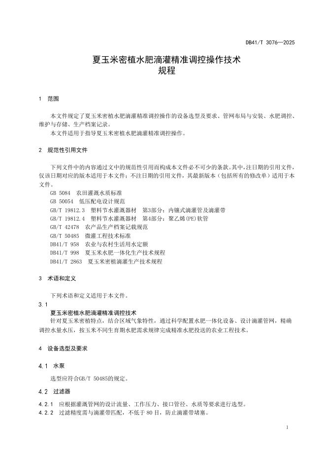 DB41/T 3076-2025 夏玉米密植水肥滴灌精准调控操作技术规程
