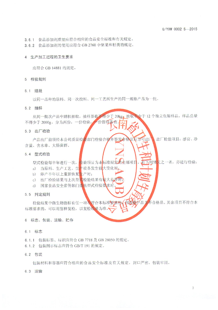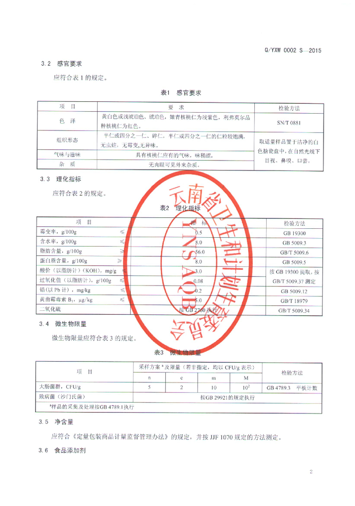 Q/YXW 0002S-2015 云南信威食品有限公司 核桃仁