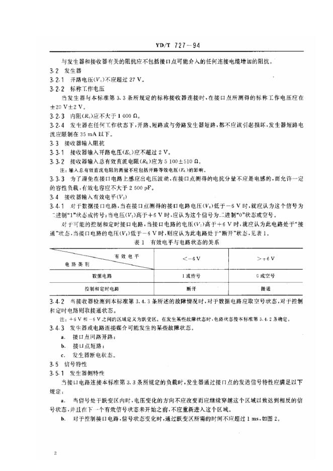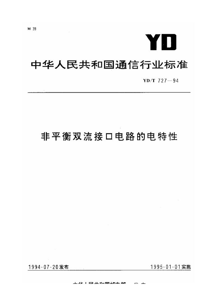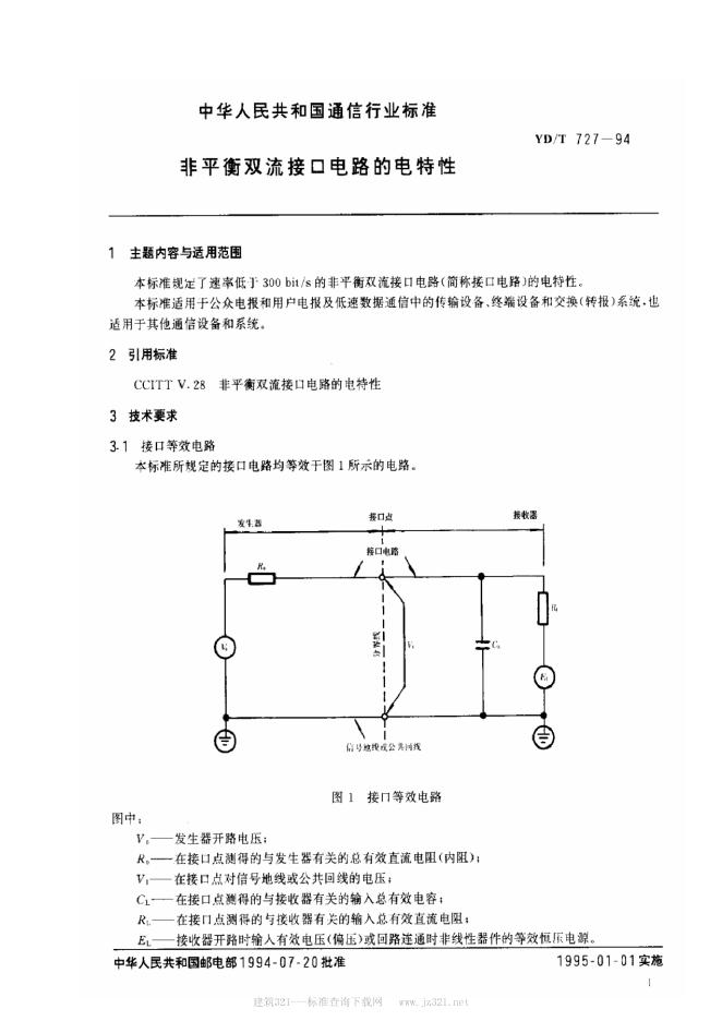 YD/T 727-1994 非平衡双流接口电路的电特性