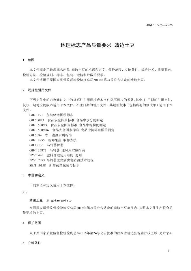 DB61/T 975-2025 地理标志产品质量要求 靖边土豆