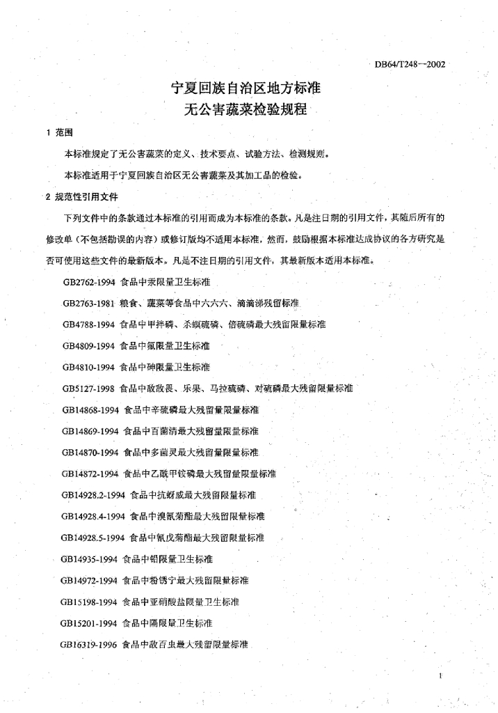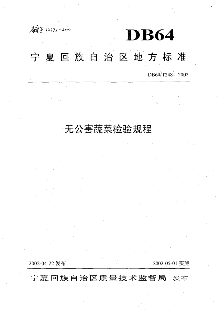 DB64/T 248-2002 无公害蔬菜检验规程