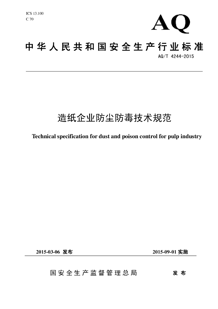 AQ/T 4244-2015 造纸企业防尘防毒技术规范