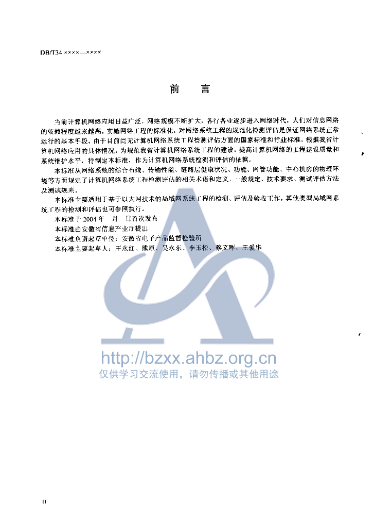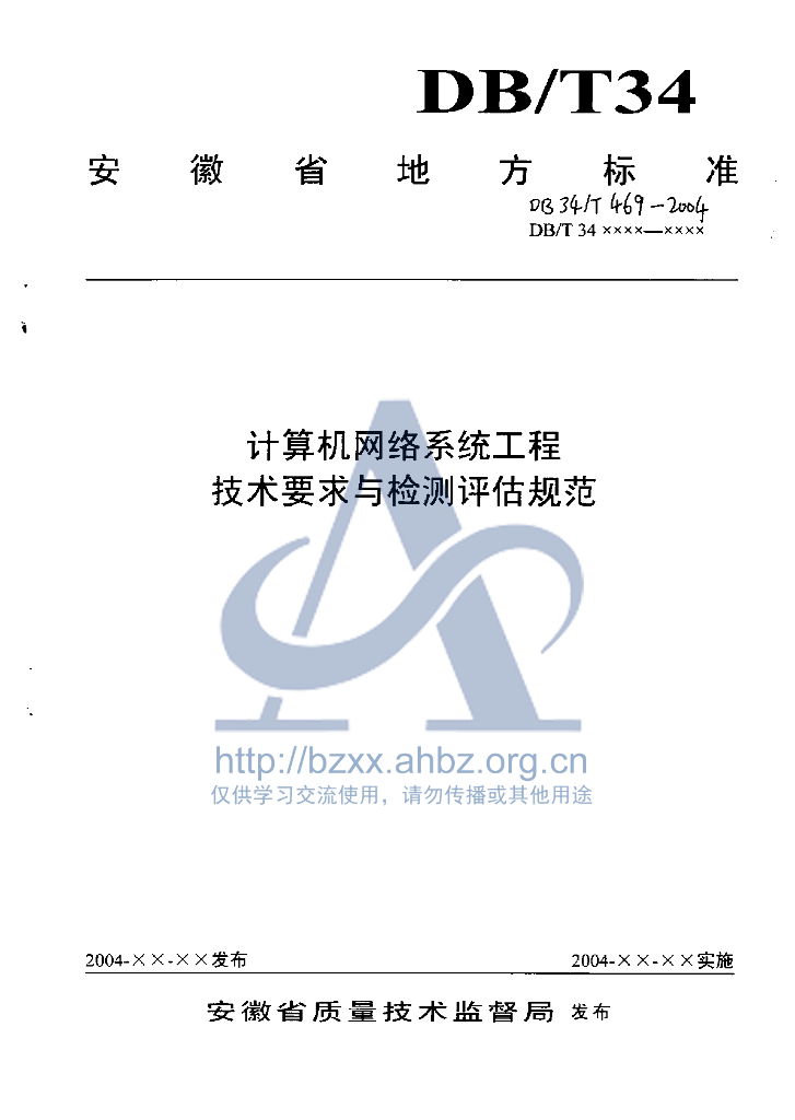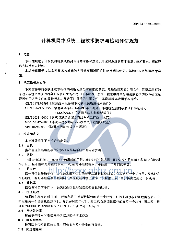 DB34/T 469-2004 计算机网络系统工程技术要求与检测评估规范