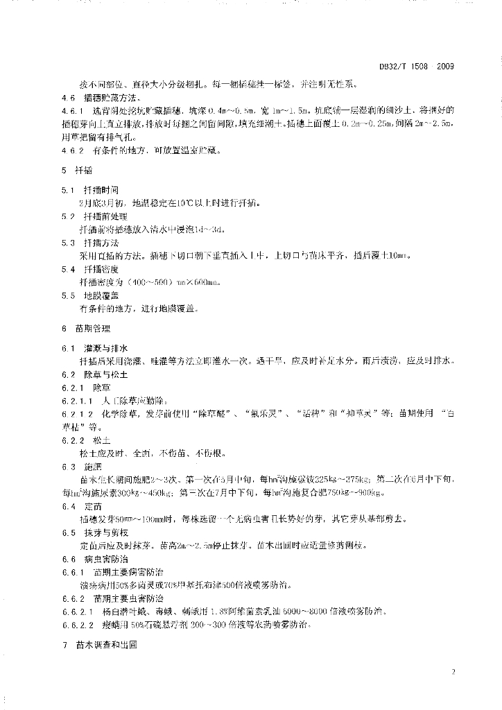 DB32/T 1508-2009 苏柳172扦插育苗技术规程