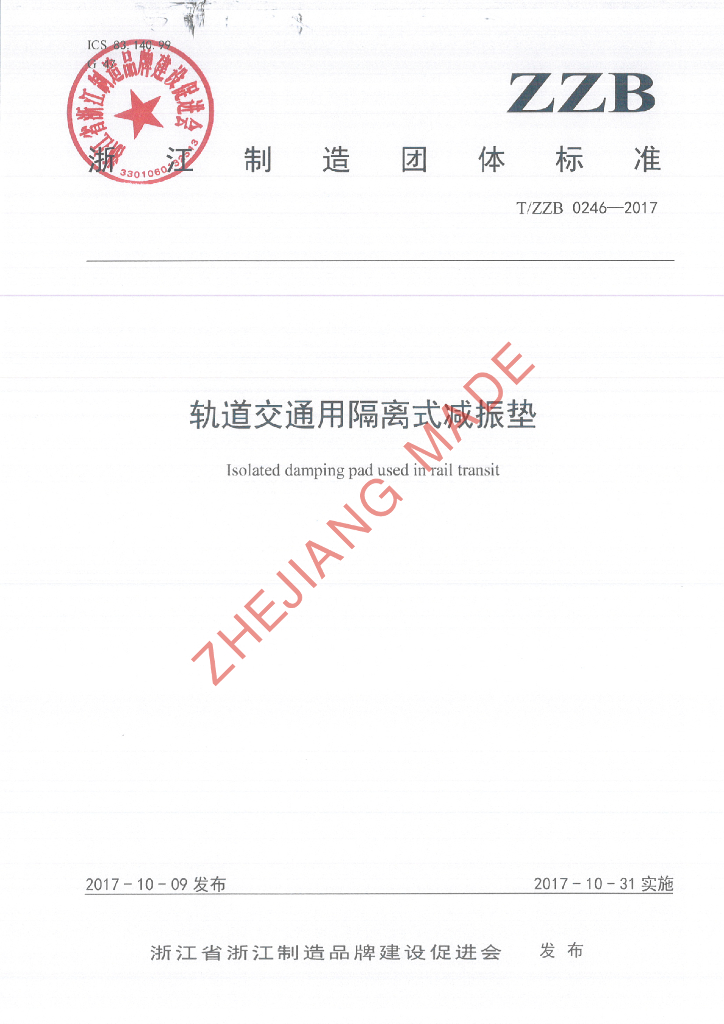 T/ZZB 0246-2017 轨道交通用隔离式减振垫