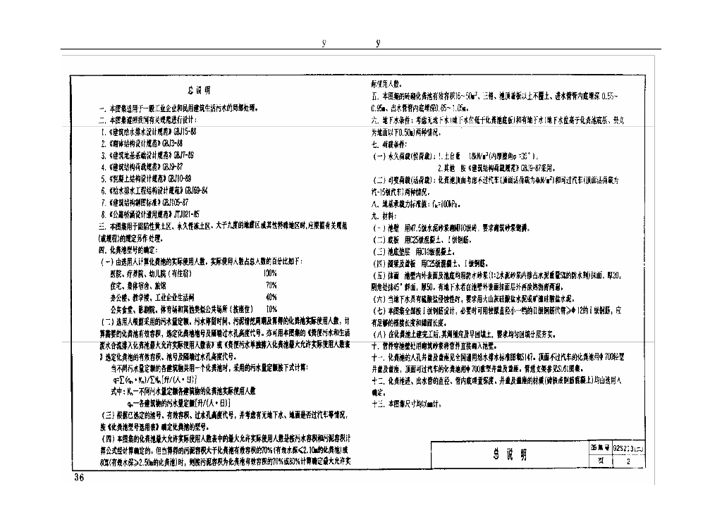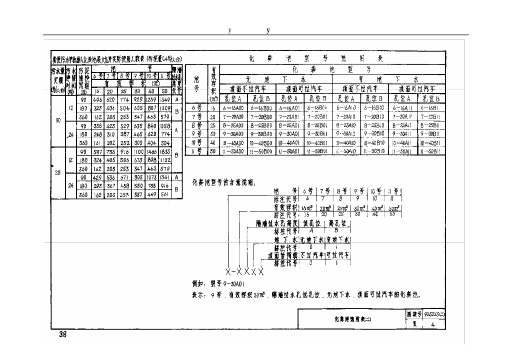 92S213(二) 砖砌化粪池(有效容积16~50m³池顶不覆土)图集