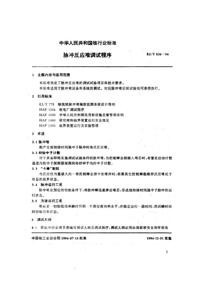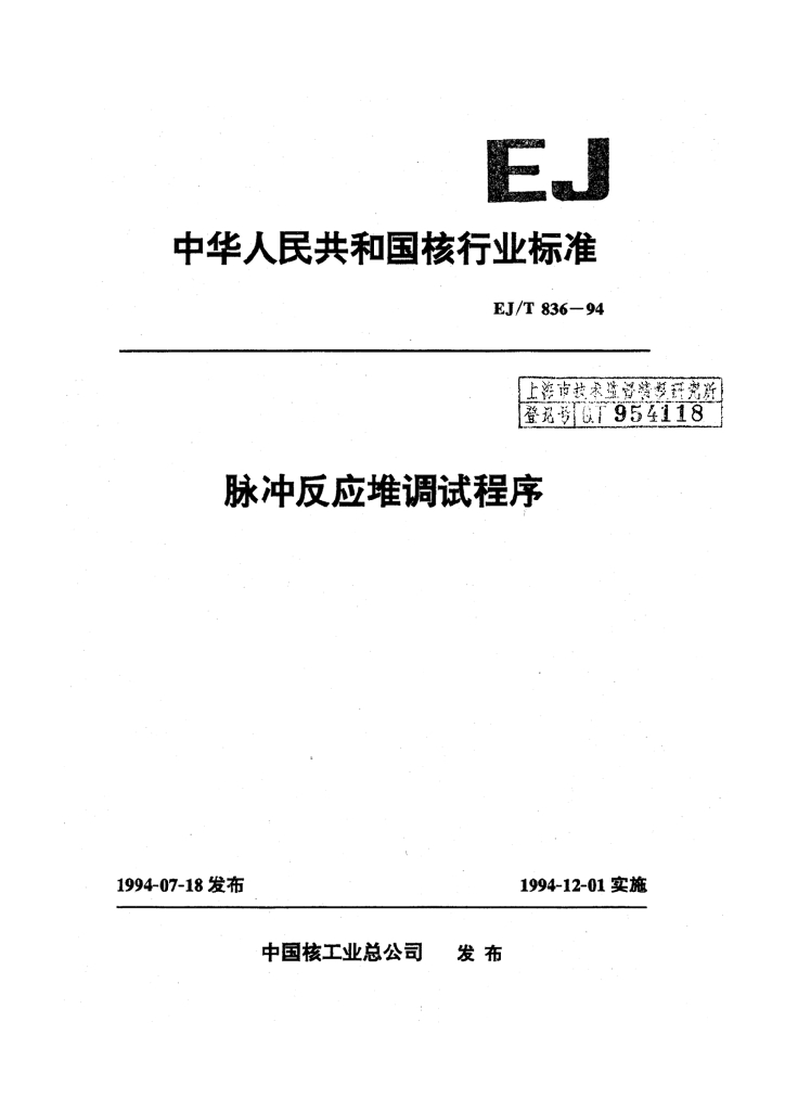EJ/T 836-1994 脉冲反应堆调试程序