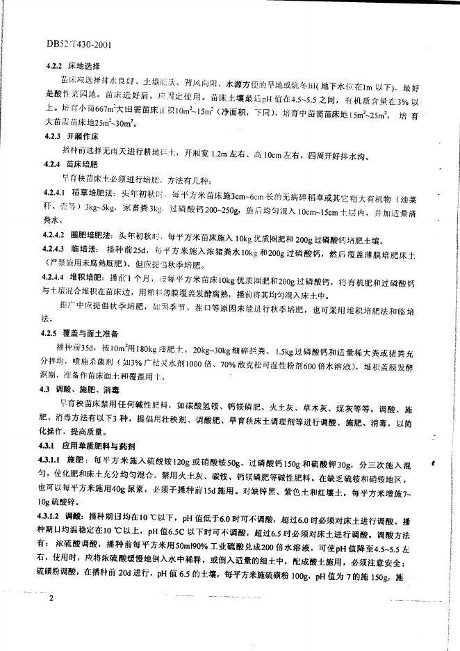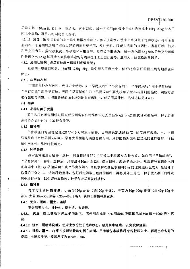 DB52/T 430-2001 贵州省水稻旱育稀植栽培技术规范