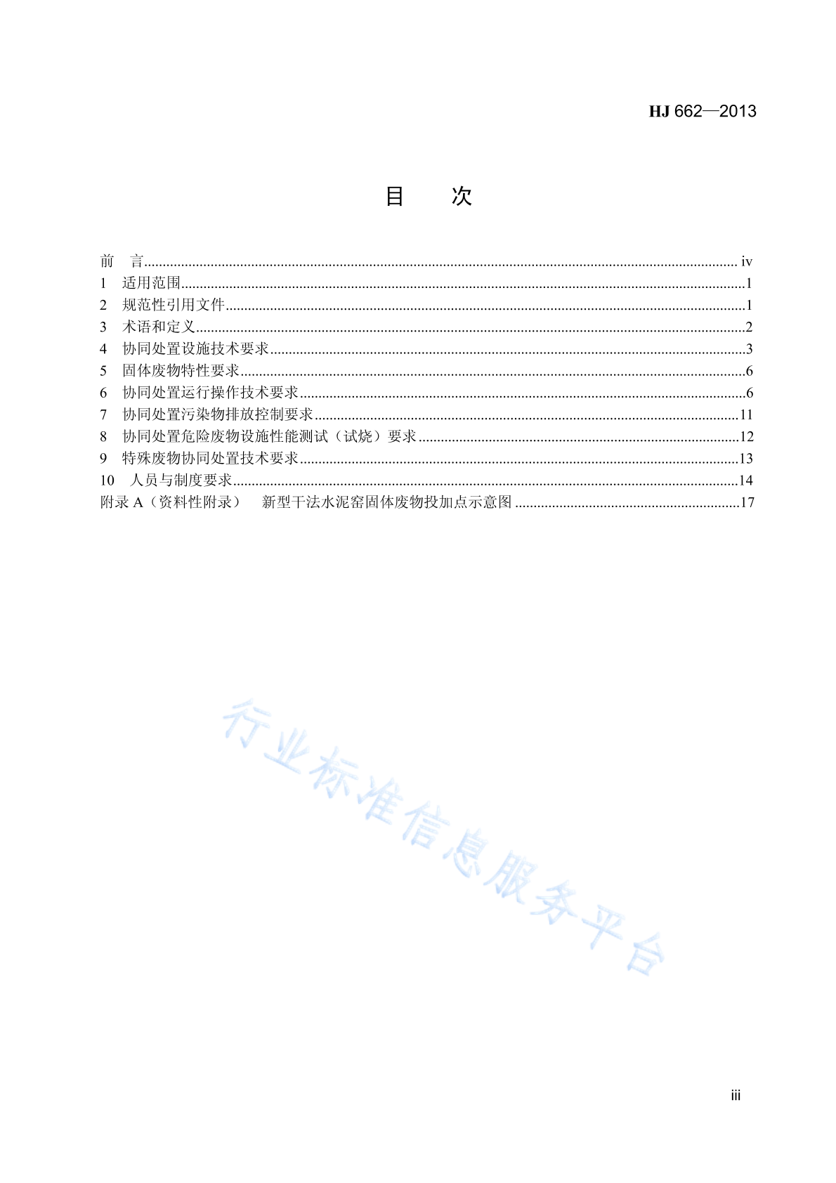 HJ 662-2013 水泥窑协同处置固体废物环境保护技术规范