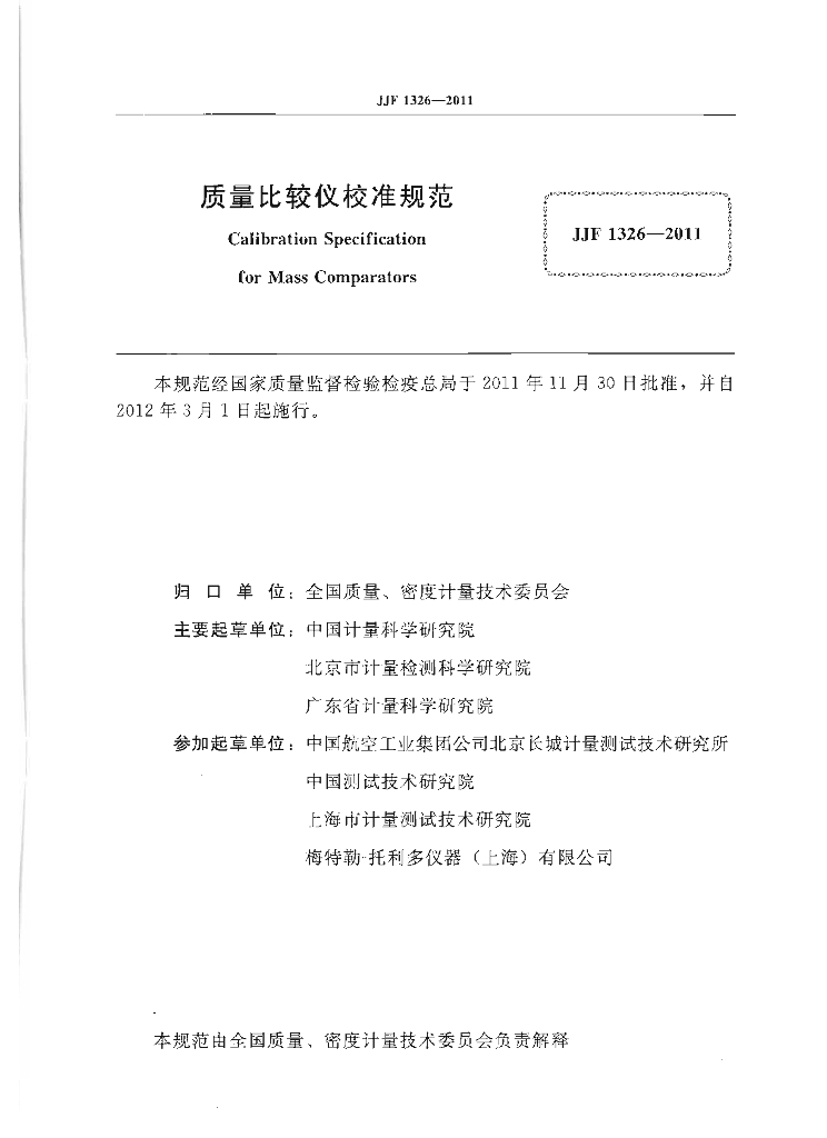 中国计量科学研究院、北京市计量检测科学研究院、广东省计量科学研究院、中国航空工业集团公司北京长城计量测试技术研究所、中国测试技术研究院、上海市计量测试技术研究院、梅特勒一托利多仪器(上海)有限公司