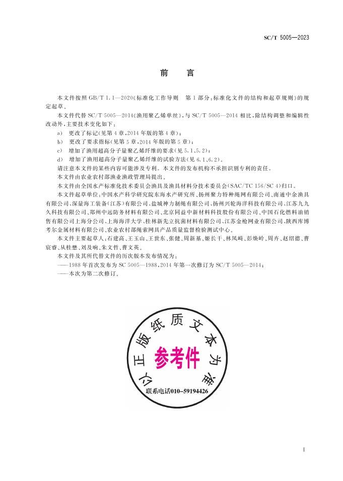 中国水产科学研究院东海水产研究所、扬州聚力特种绳网有限公司、南通中余渔具有限公司、深量海工装备(江苏)有限公司、盐城神力制绳有限公司、扬州兴轮海洋科技有限公司、江苏九九久科技有限公司、郑州中远防务材料有限公司、北京同益中新材料科技股份有限公司、中国石化燃料油销售有限公司上海分公司、上海海洋大学、桂林新先立抗菌材料有限公司、江苏金枪网业有限公司、陕西库博考尔金属材料有限公司、农业农村部绳索网具产品质量监督检验测试中心