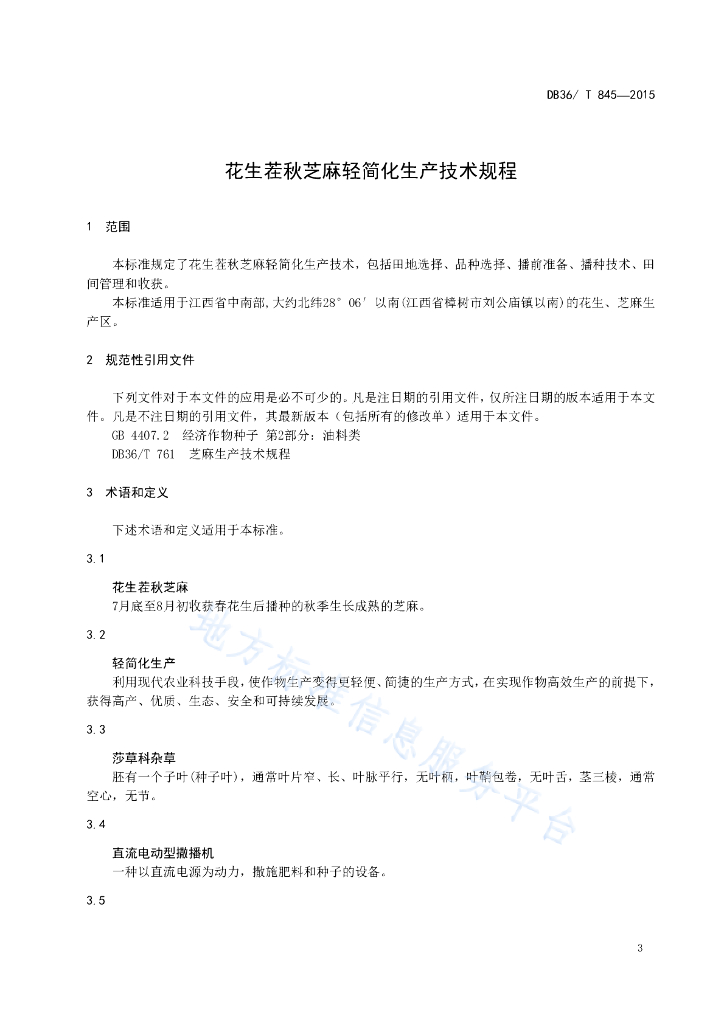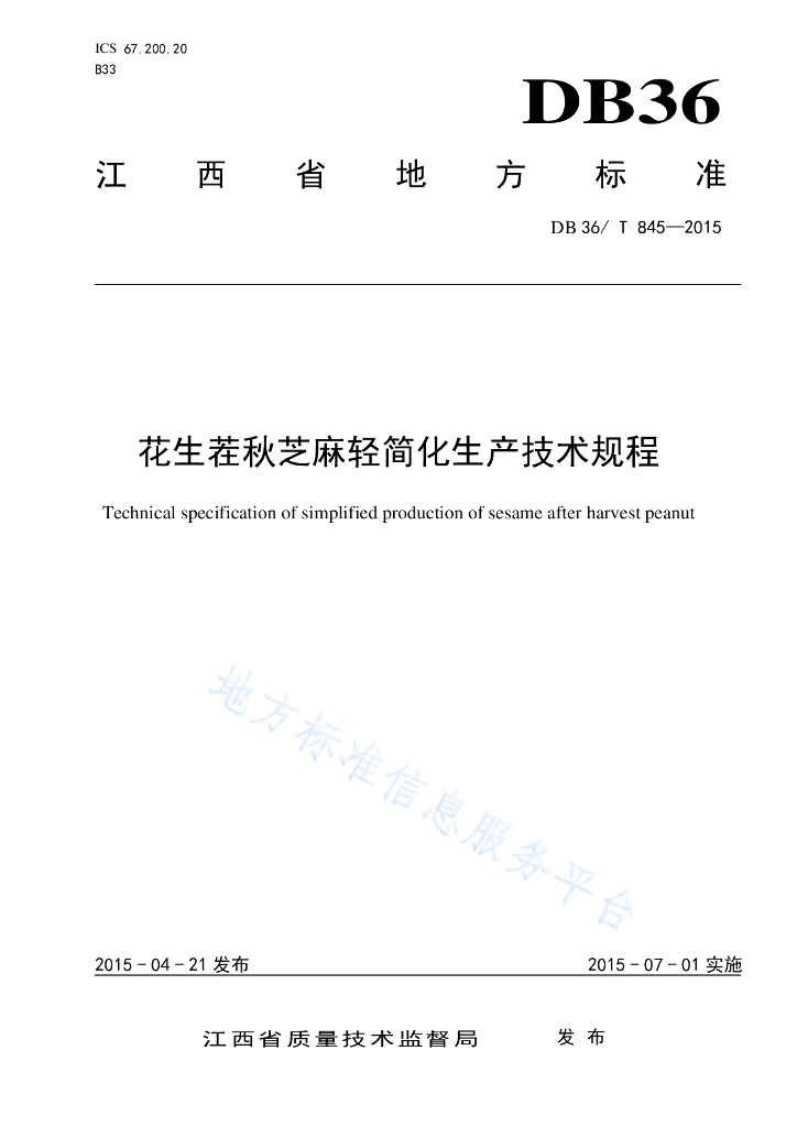 DB36/T 845-2015 花生茬秋芝麻轻简化生产技术规程