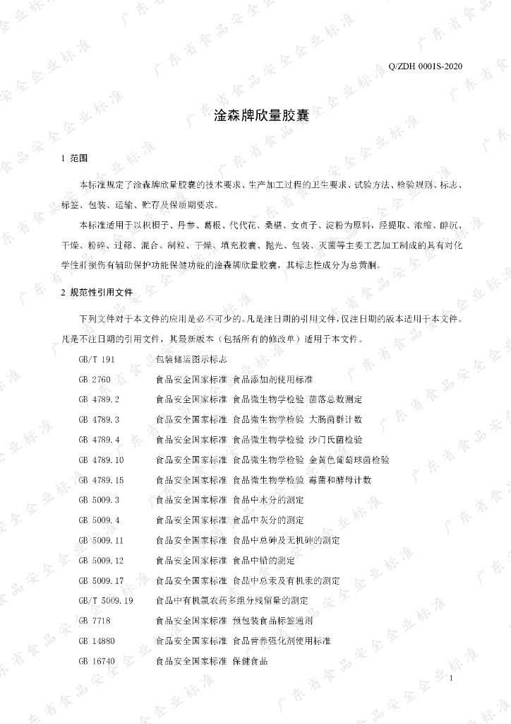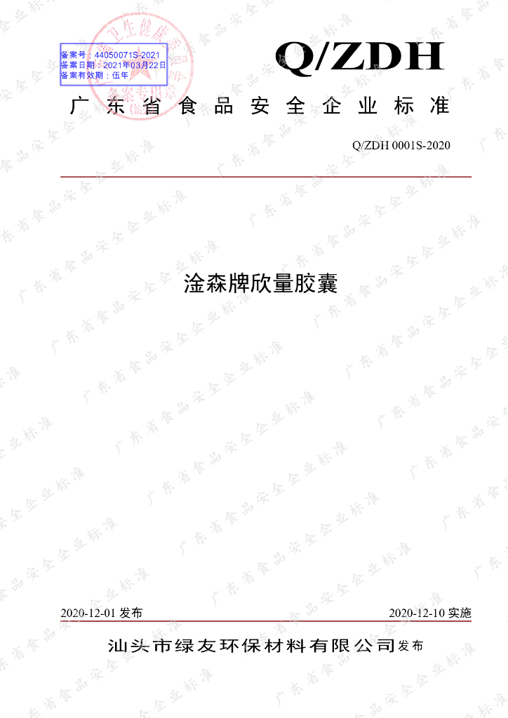 Q/ZDH 0001S-2020 淦森牌欣量胶囊