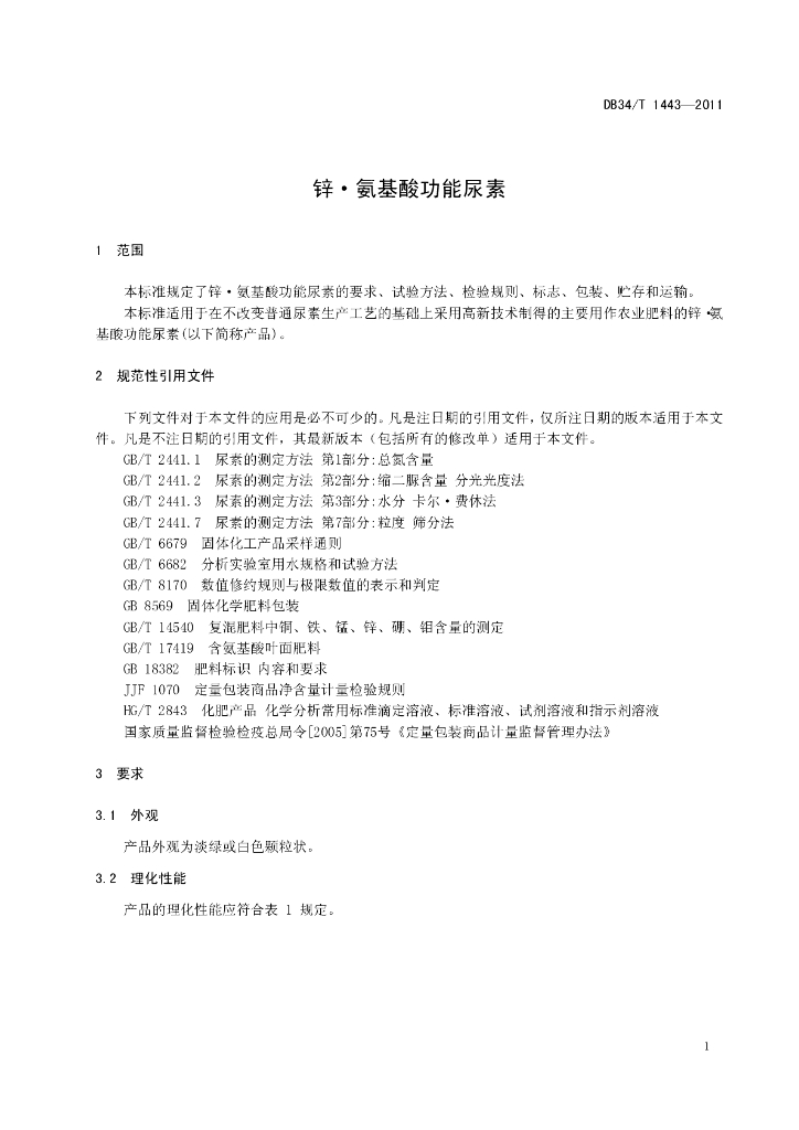 DB34/T 1443-2011 锌・氨基酸功能尿素