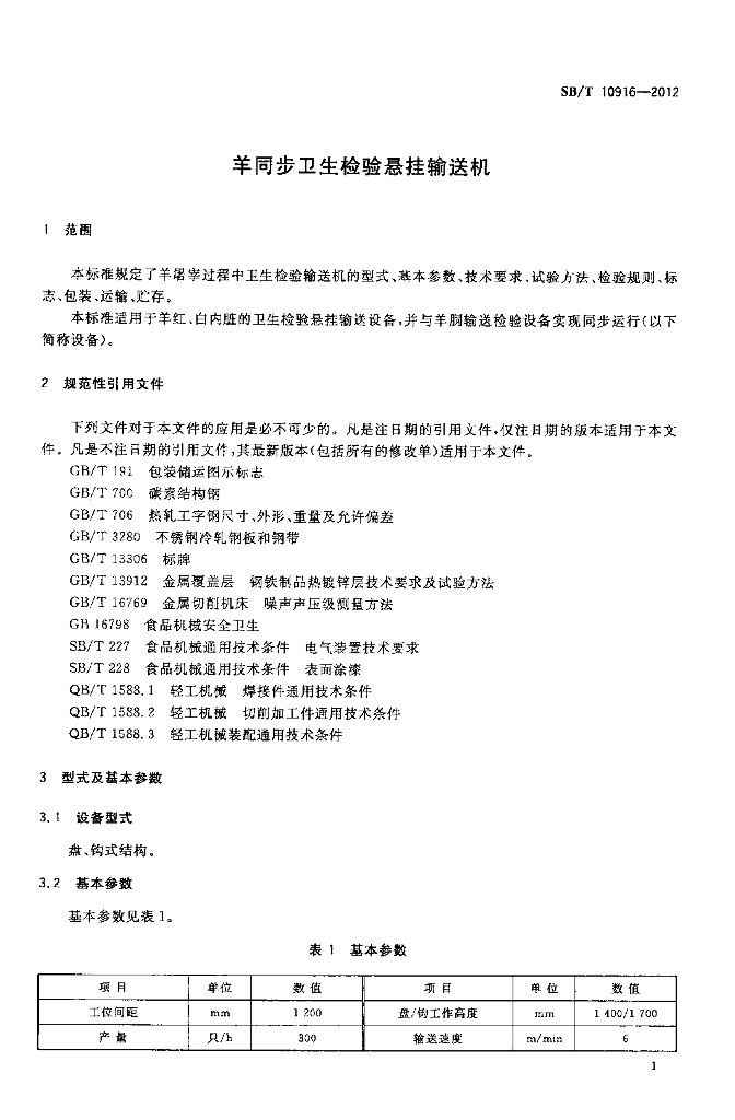 SB/T 10916-2012 羊同步卫生检验悬挂输送机