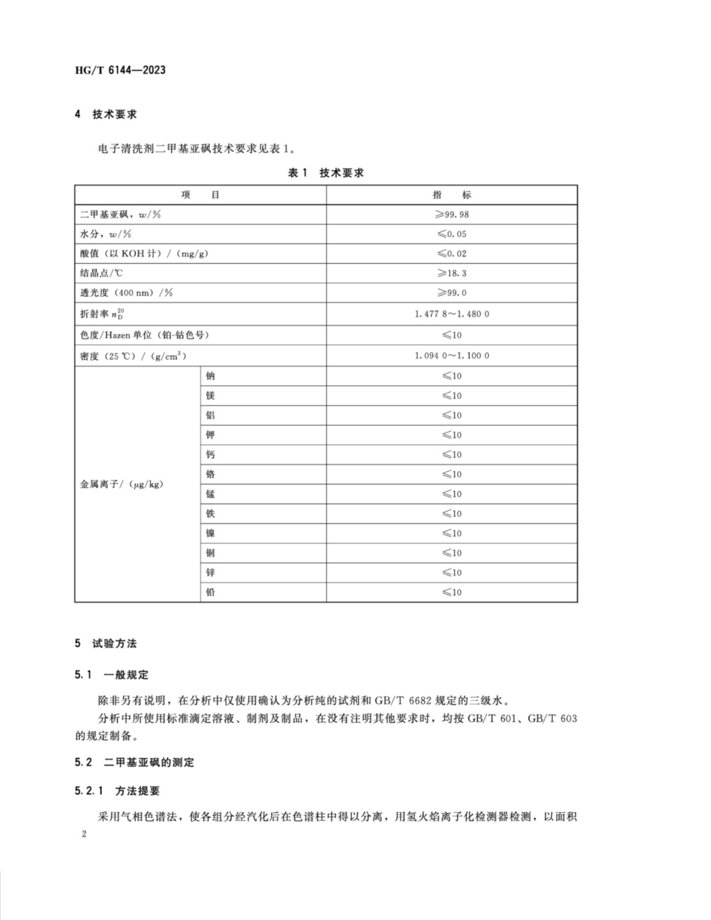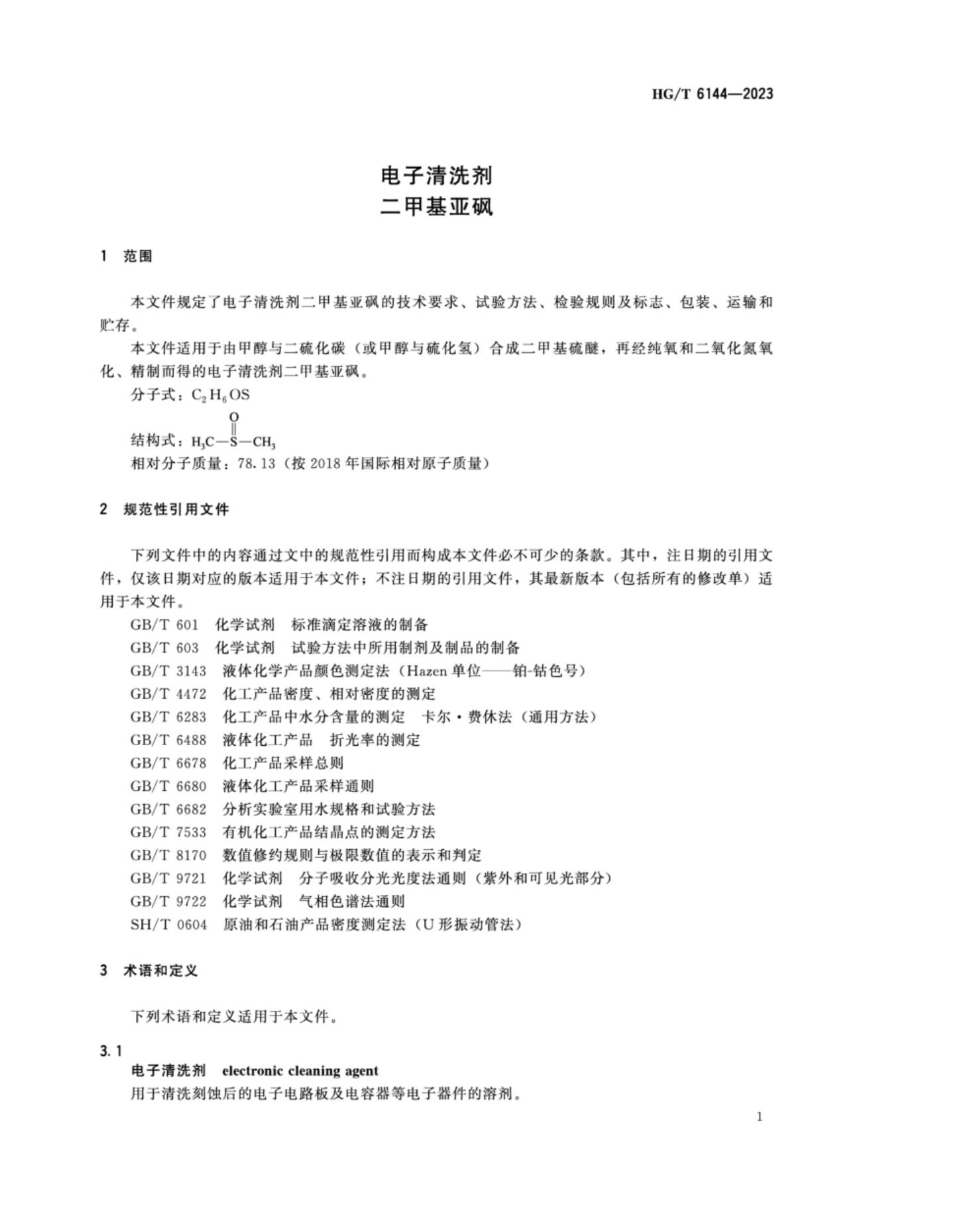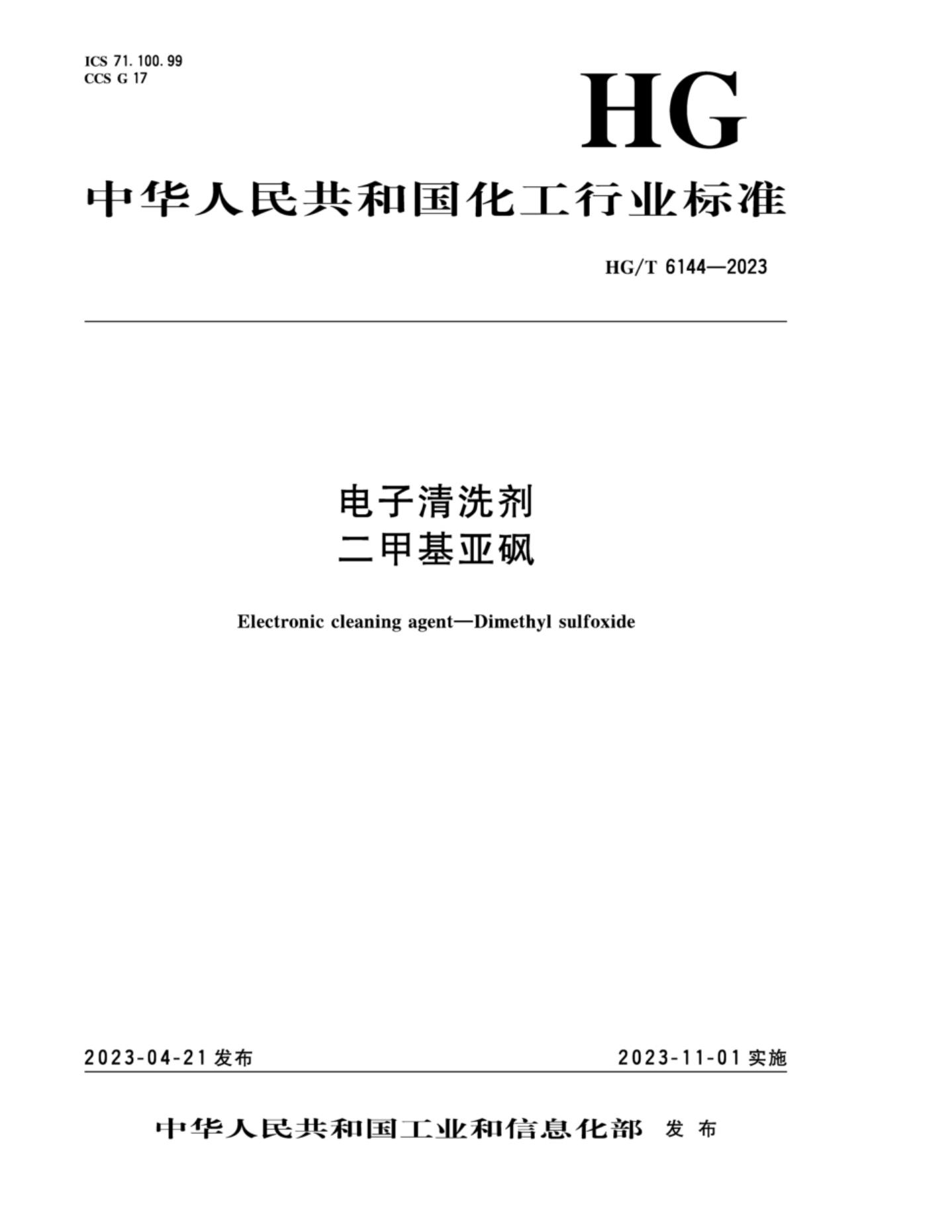 HG/T 6144-2023 电子清洗剂 二甲基亚砜