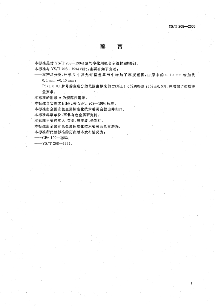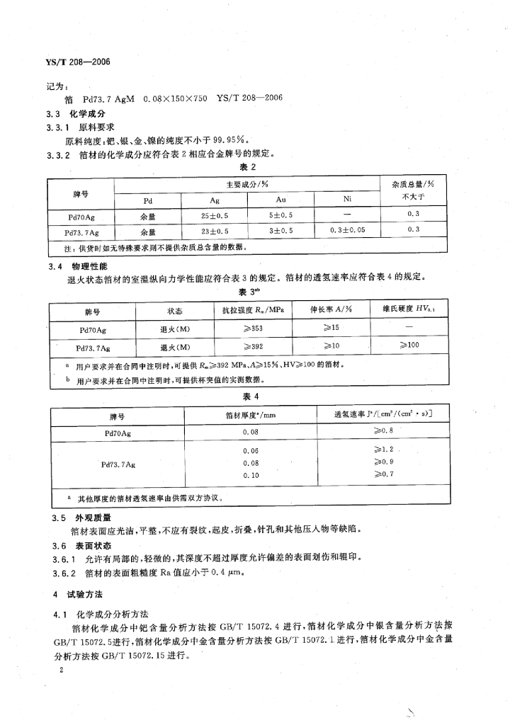 YS/T 208-2006 氢气净化器用钯合金箔材