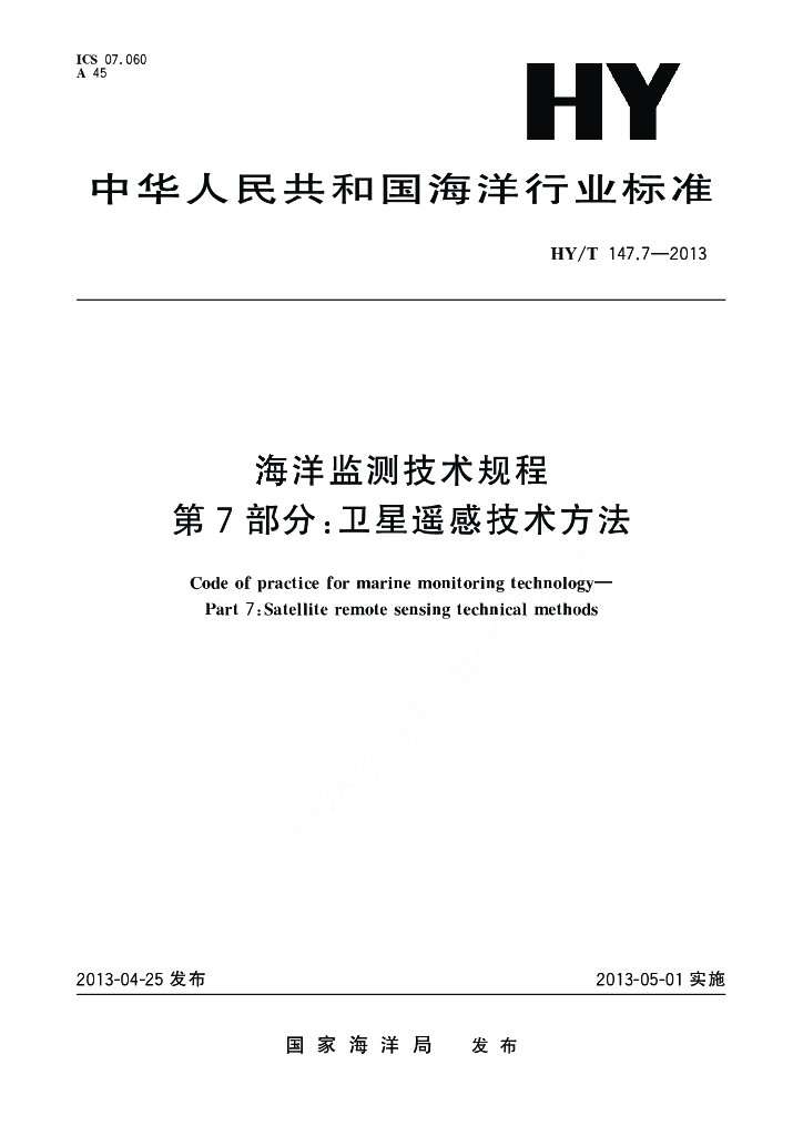 HY/T 147.7-2013 海洋监测技术规程 第7部分:卫星遥感技术方法