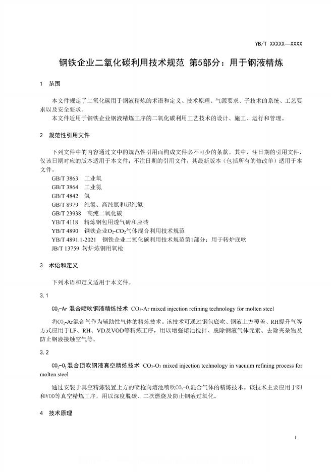 YB/T 4891.5-2024 钢铁企业二氧化碳利用技术规范 第5部分:用于钢液精炼