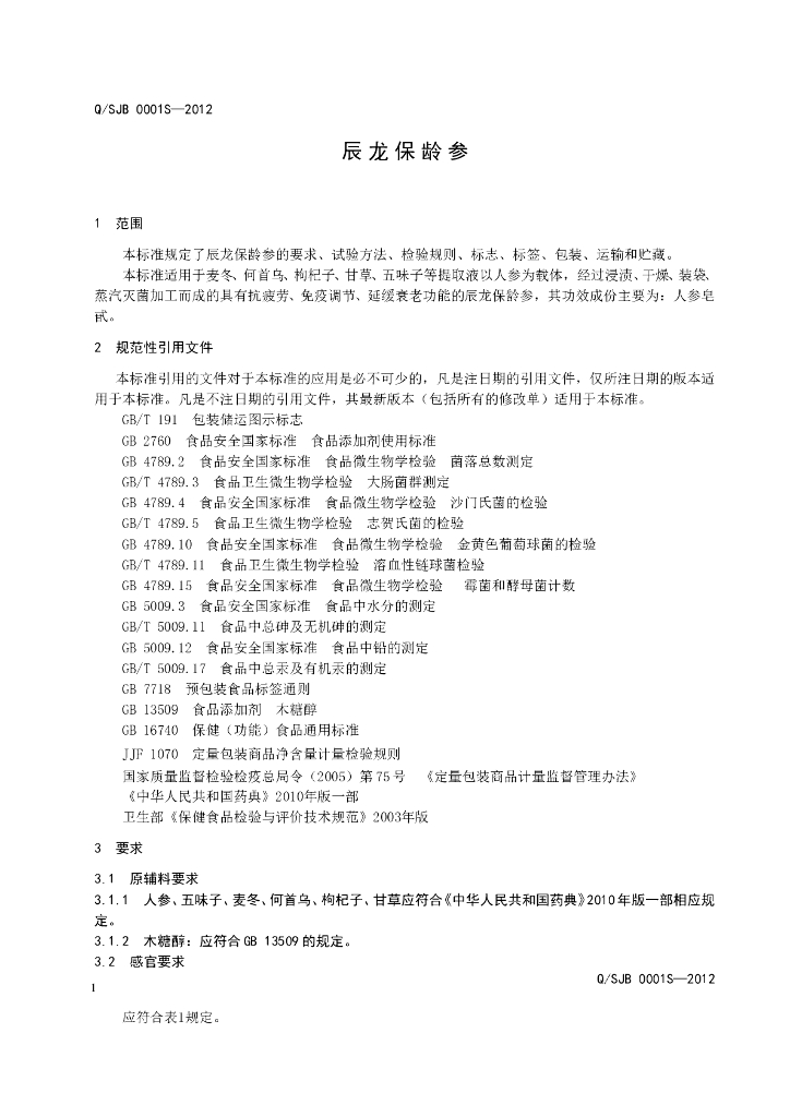 Q/SJB 0001S-2012 辰龙保龄参